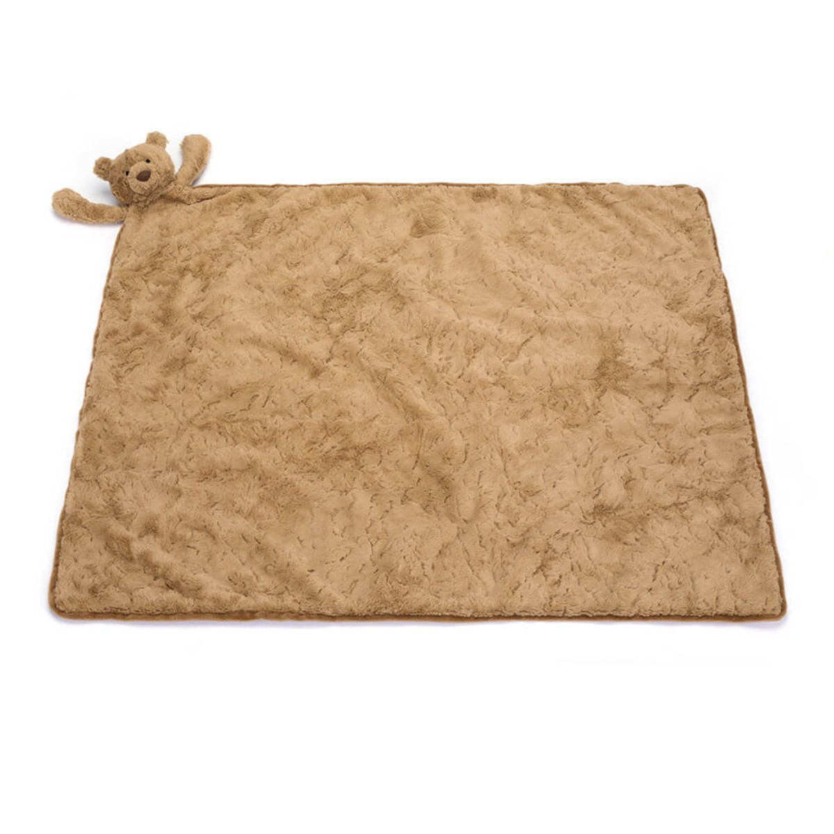 Bartholomew Bjørn Tæppe fra Jellycat er den perfekte kombination af et hyggeligt tæppe og en kær bamse, som dit barn vil elske. Dette firkantede tæppe har en fastmonteret bamse i det ene hjørne, hvilket gør det til en kær følgesvend, uanset om det er til leg eller lur. Med en størrelse på 56 cm x 70 cm x 9 cm er tæppet ideelt for både spædbørn og småbørn, der har brug for noget blødt og trygt at kramme.