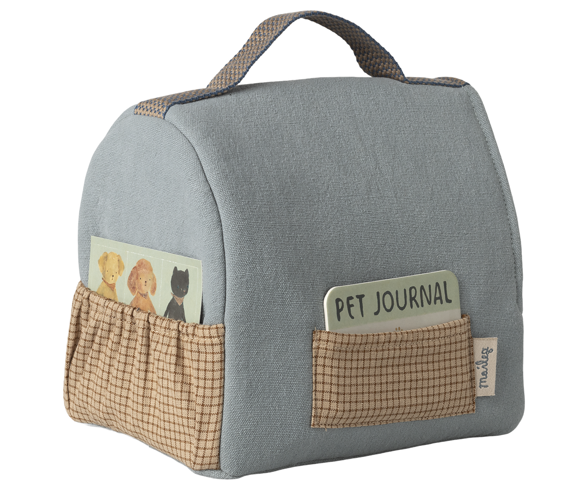 Mailegs charmerende kæledyrstaske er det perfekte tilbehør til dit barns elskede kæledyrsbamser. Denne bløde og hyggelige taske har praktiske håndtag foroven, der gør det let for dit barn at bære deres små venner med sig overalt. Designet er særligt velegnet til børn fra 3 år og sikrer timevis af fantasifuld leg og omsorg for deres bamsevenner.
