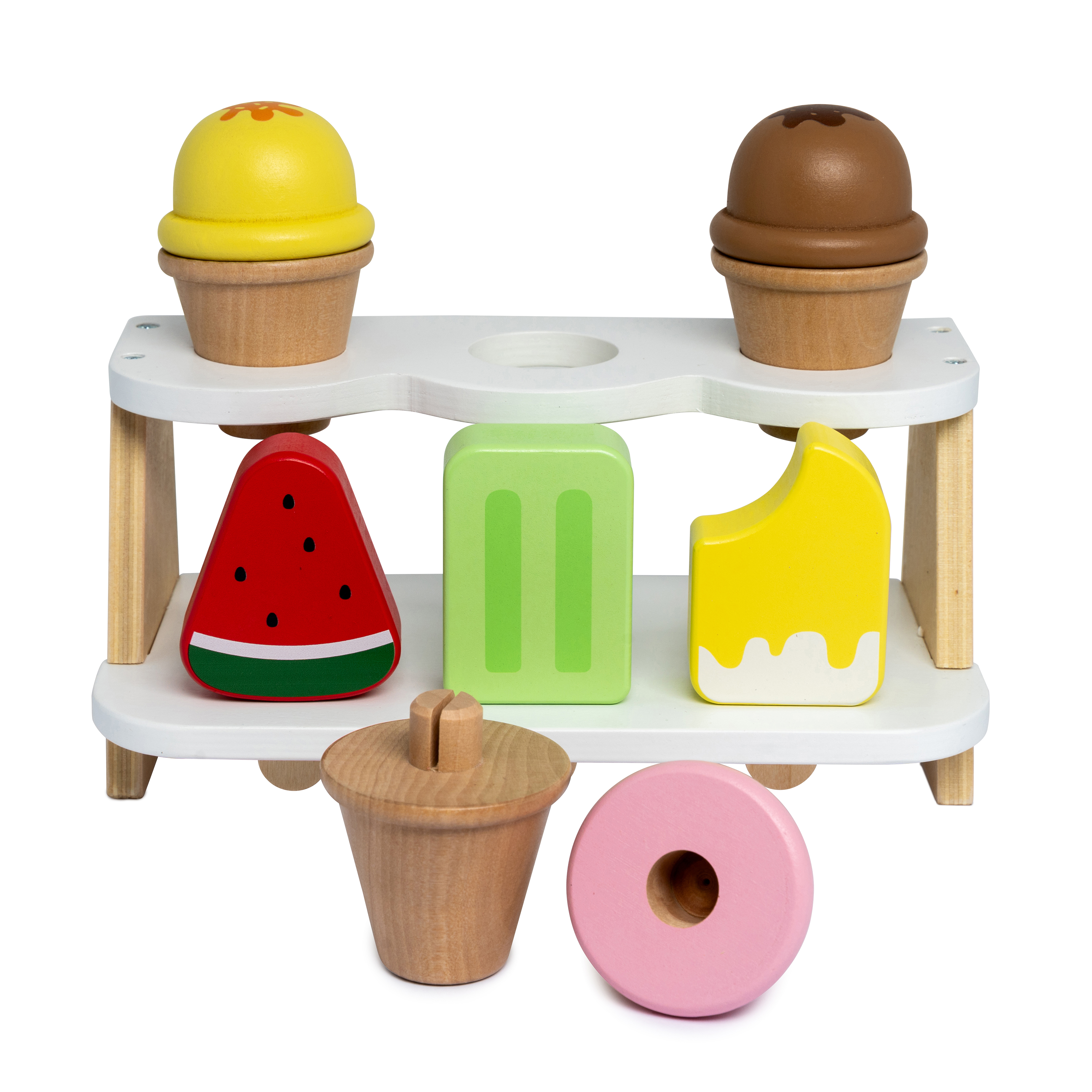 MaMaMeMo præsenterer en spændende isbar, der vil bringe glæde og kreativ leg til dit barn. Isbaren kommer med et udvalg af 6 forskellige isvarianter, så der er noget for enhver lille isentusiast. Med 3 is på pind og 3 isvafler kan dit barn vælge mellem forskellige former og farver, hvilket opfordrer til fantasifuld leg og hjælper med at udvikle finmotorikken.