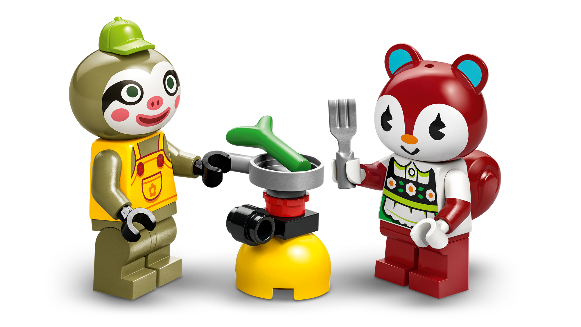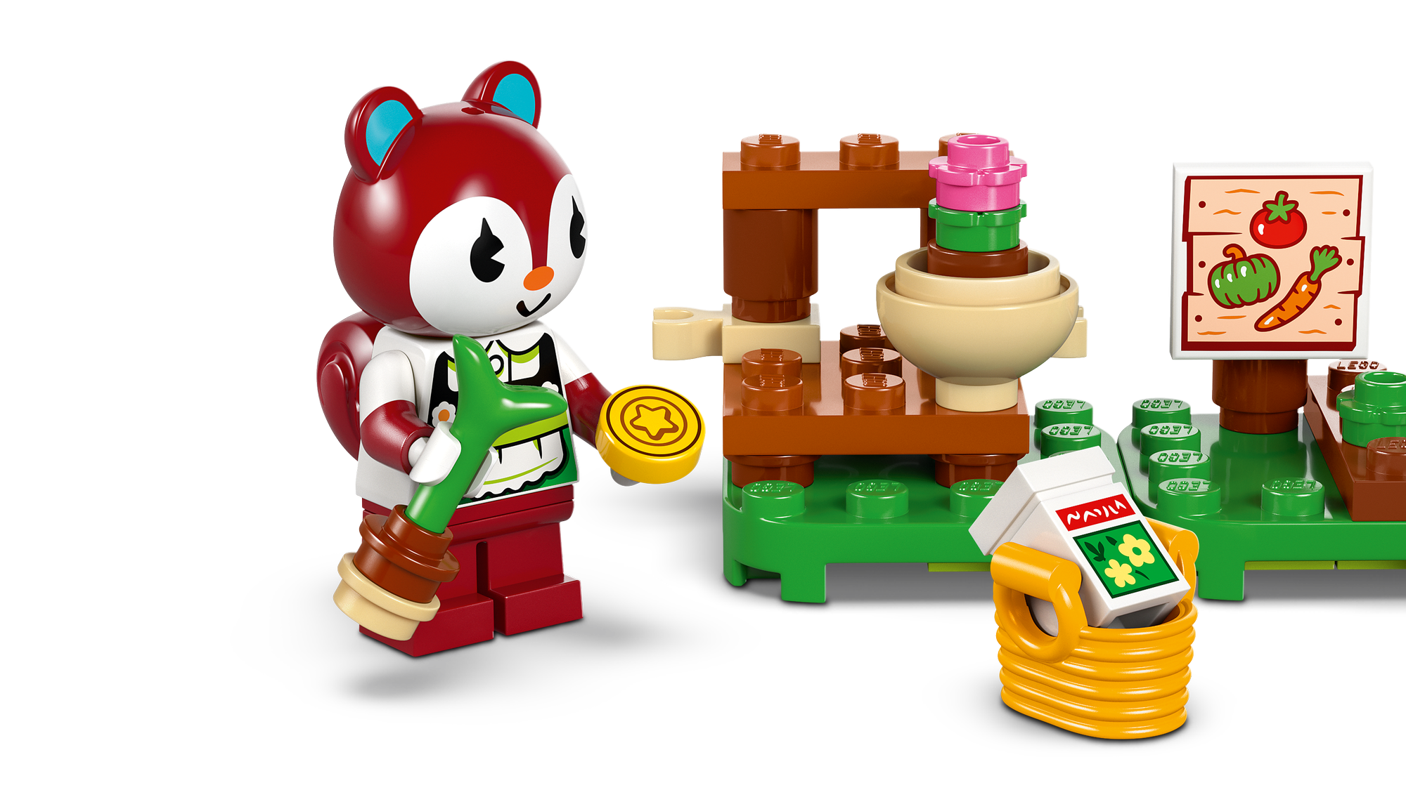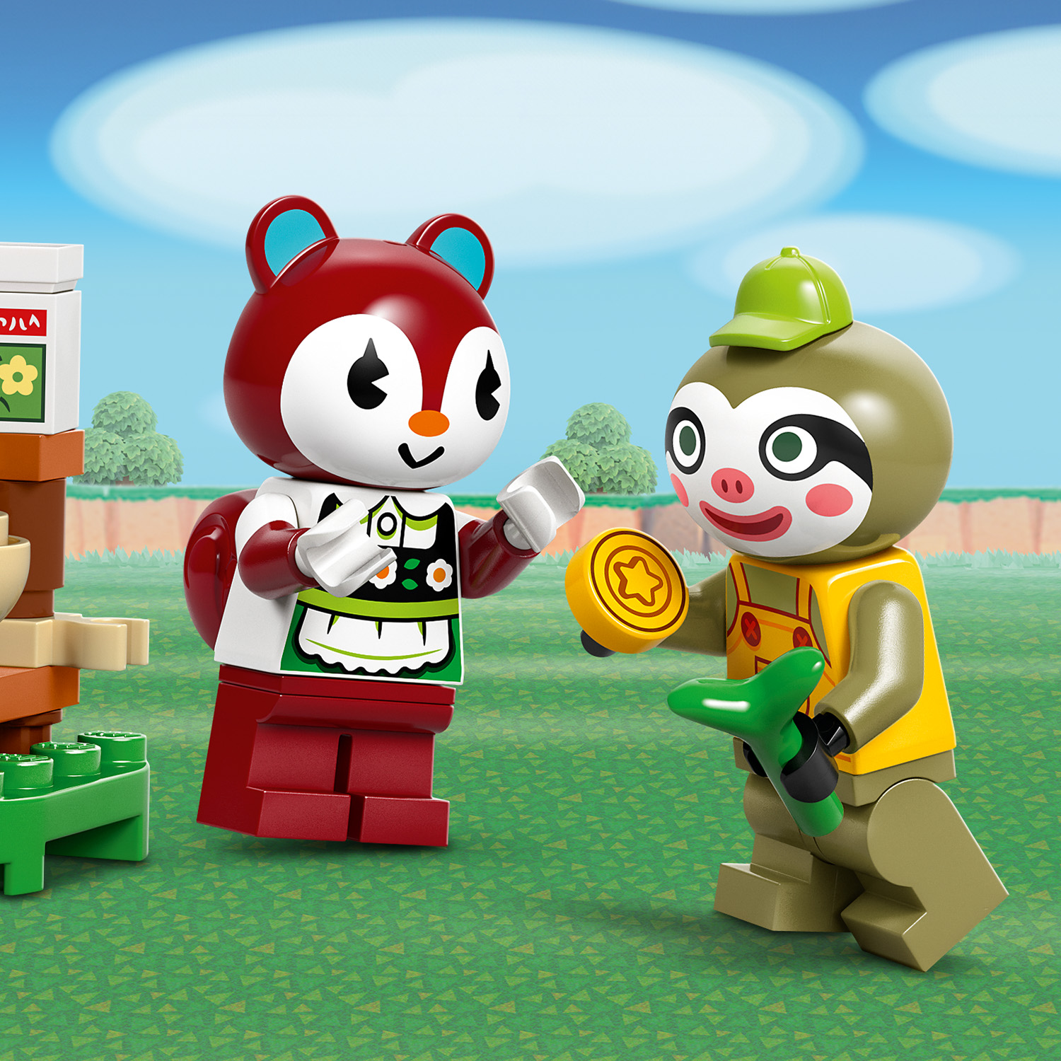 2 LEGO® minifigurer fra Animal Crossing™ – Legesættet med havebutik indeholder en minifigur af dovendyret Leif og en minifigur af egernet Poppy fra videospilserien.