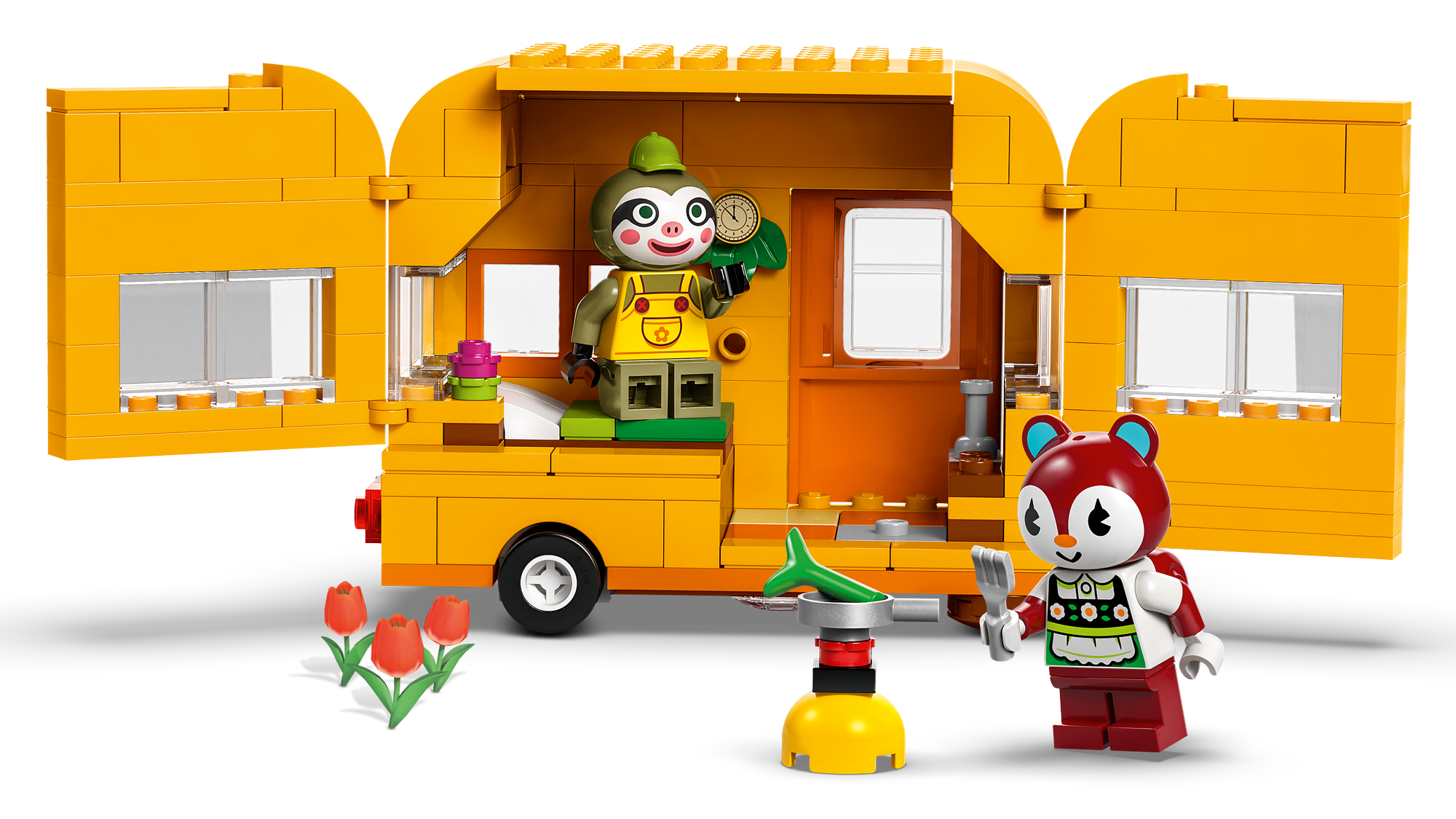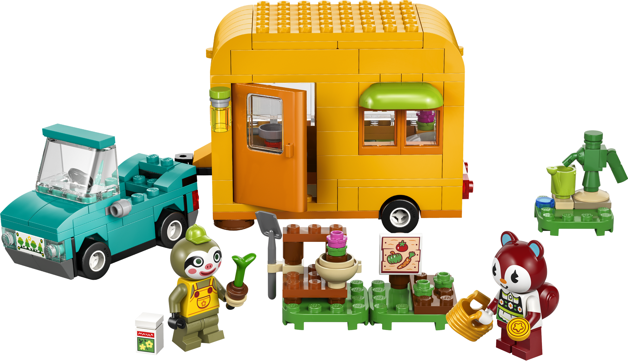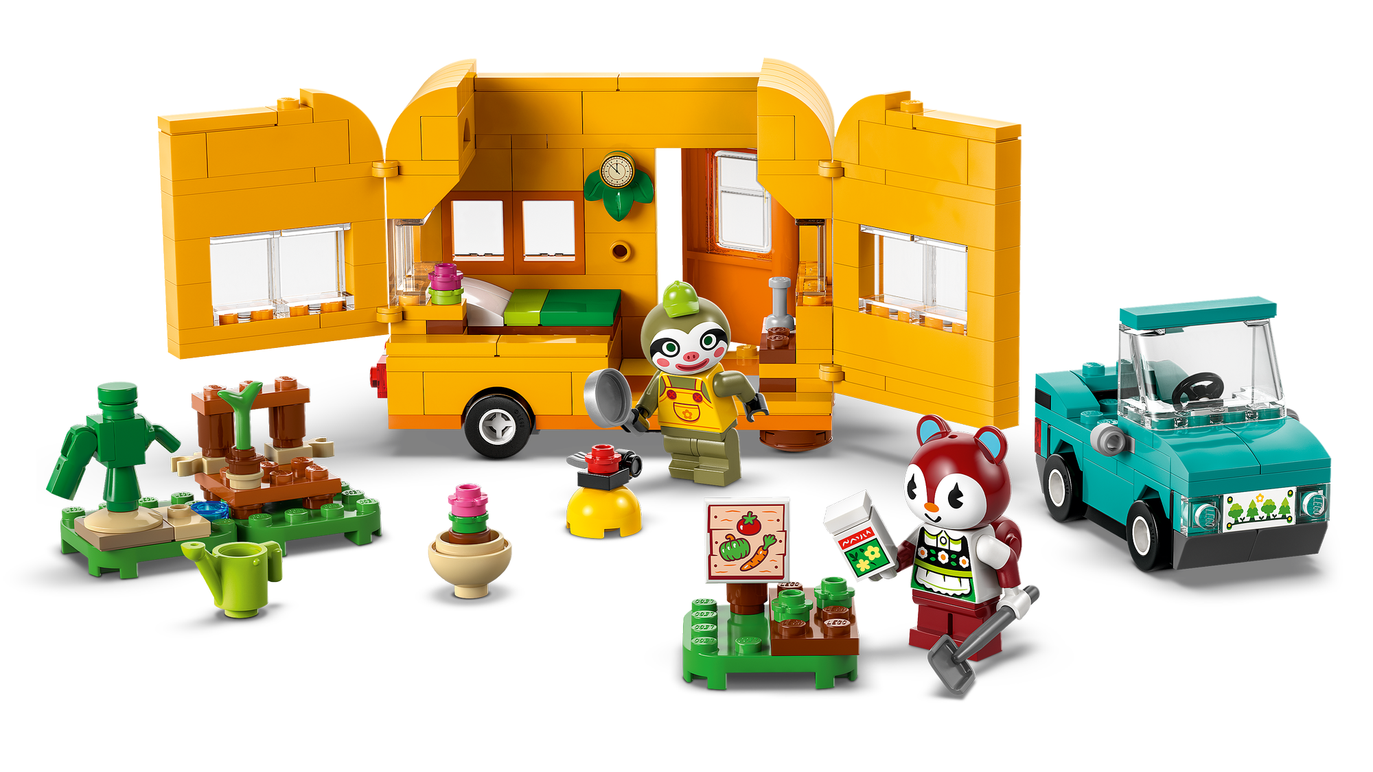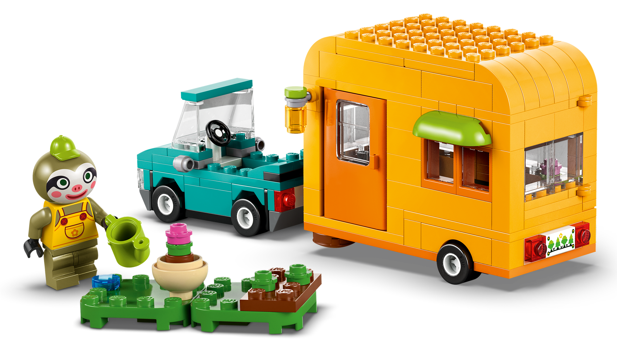 Legetøj med bil og campingvogn – Byggesættet Leif med campingvogn og havebutik til piger, drenge og Animal Crossing™-fans giver anledning til timevis af kreativ historiefortælling og fantasifuld leg.