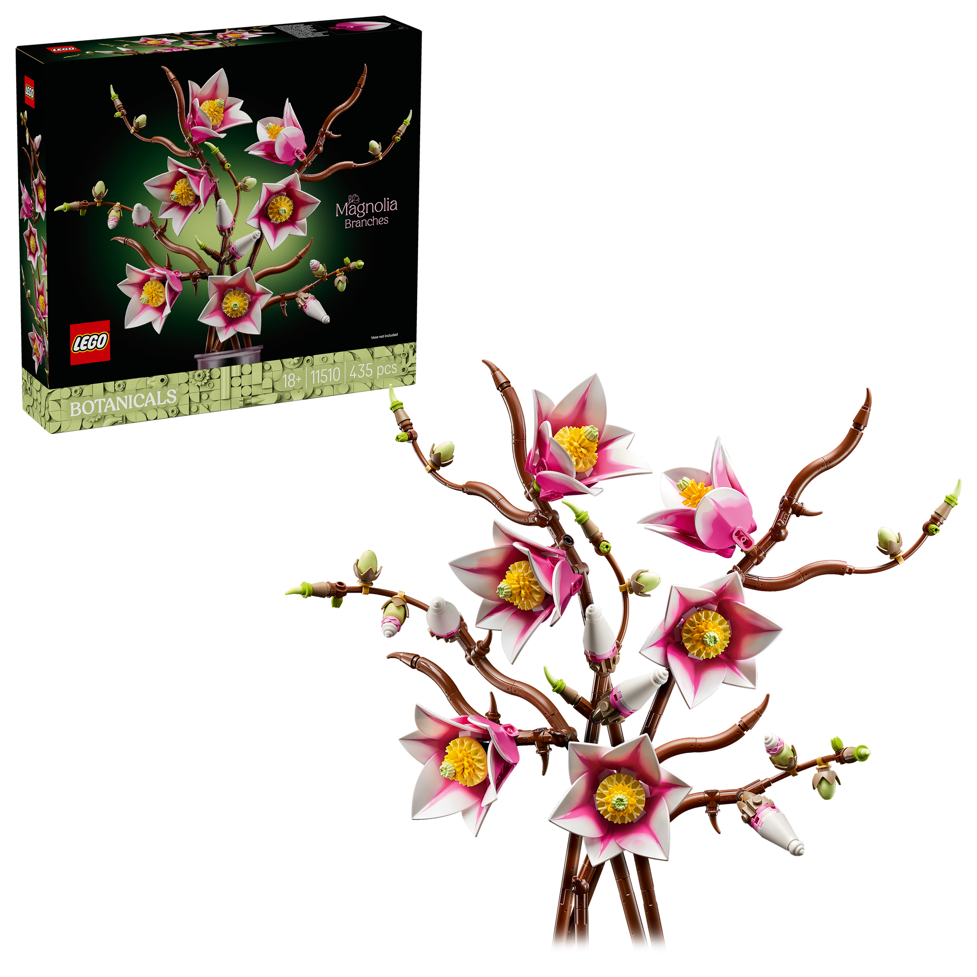 Byggesæt med blomster – Lav pynteblomster med LEGO® Botanicals byggesættet Magnolia-grene (11510) til voksne, et af de få LEGO Botanicals sæt, der indeholder grene.