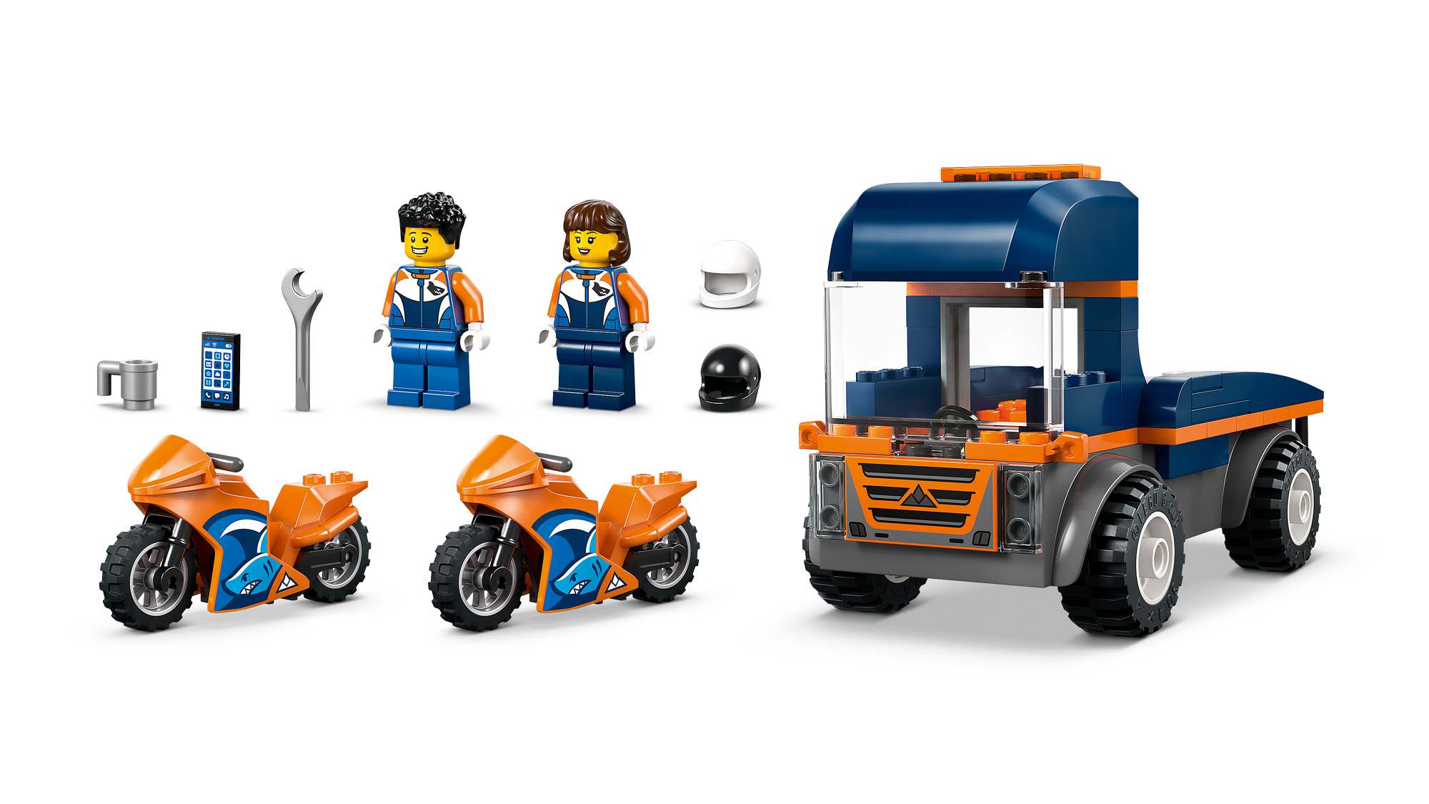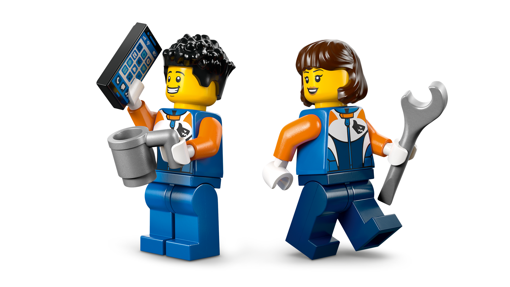Tilbehør til leg – Legetøjssættet med køretøjer omfatter LEGO® minifigurtilbehør til fantasifuld leg, såsom en skruenøgle, kop og smartphone.