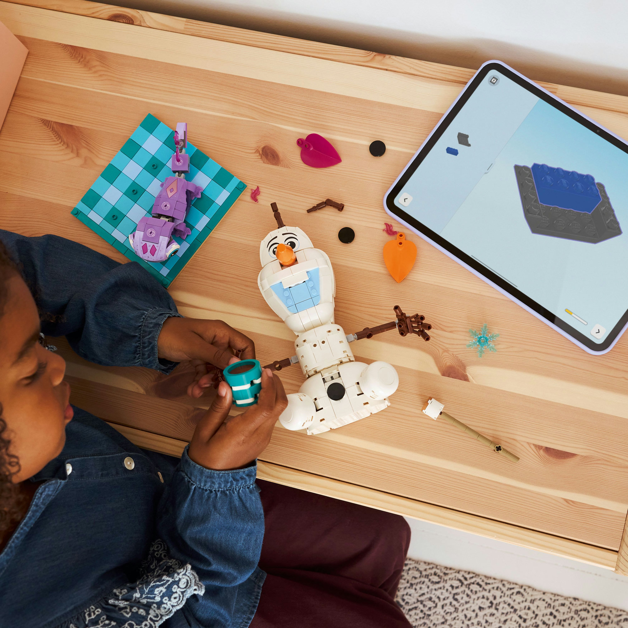 Størrelse – LEGO® ǀ Disney byg-selv-sættet med 478 elementer omfatter karakteren Olaf på et picnictæppe, og modellen er over 23 cm høj, 20 cm bred og 15 cm dyb.