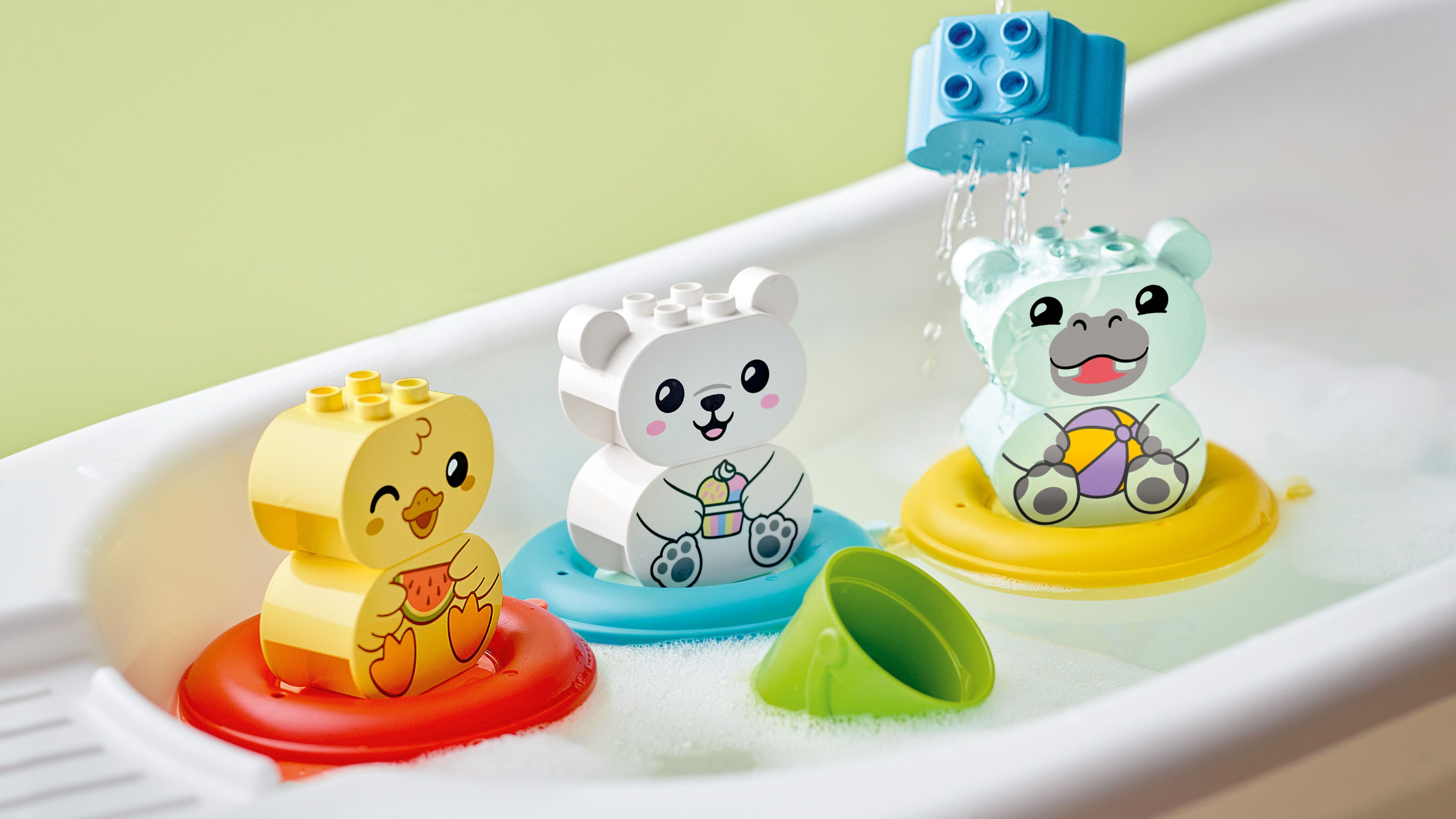 Alsidigt badelegetøj – Det farverige LEGO® DUPLO® Mine første-sæt Sjov i badet: Flydende dyretog (10965) rummer endeløse muligheder for legende læring, bad efter bad
