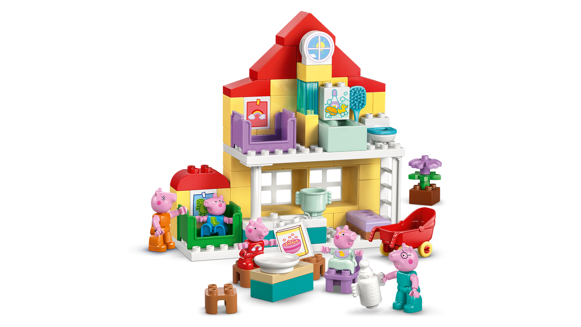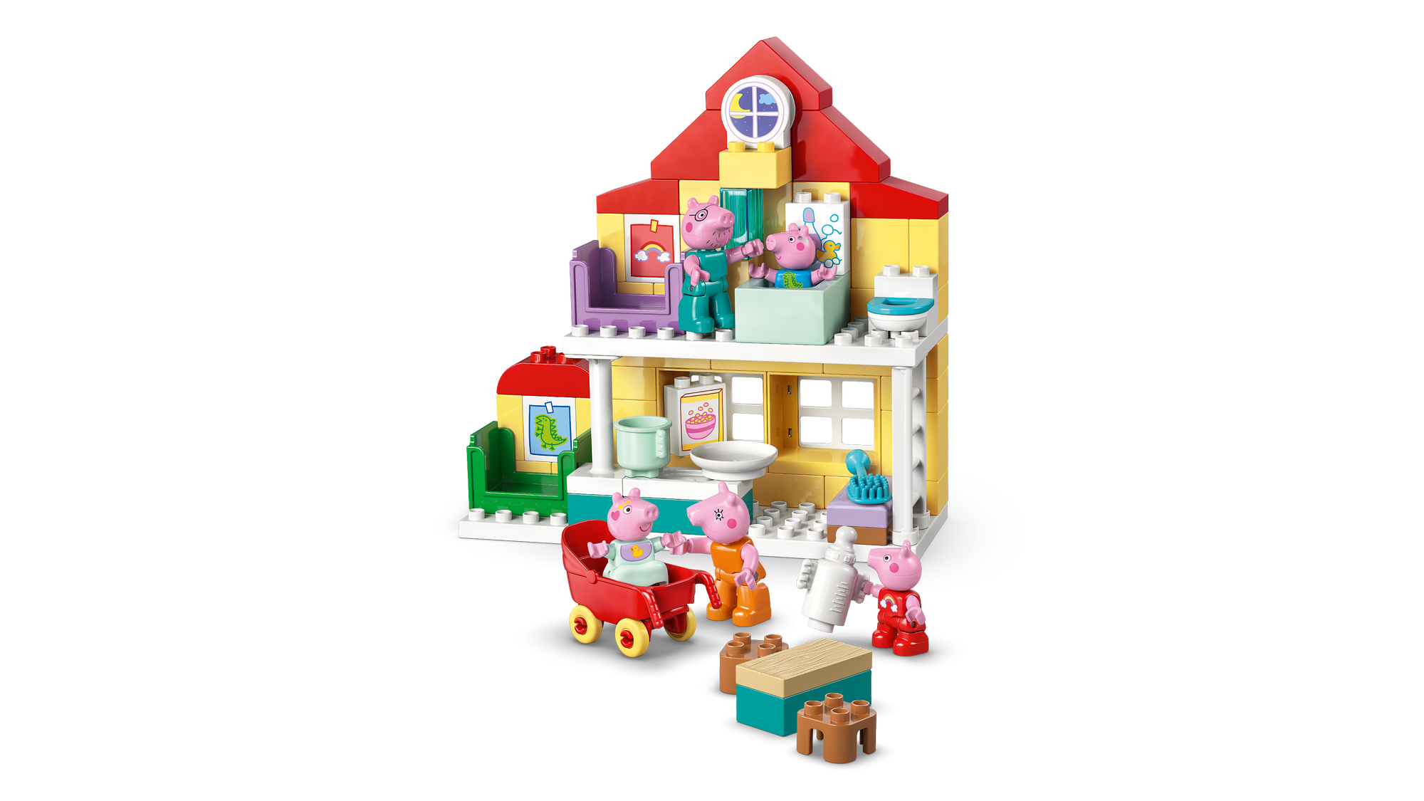 Autentiske detaljer – Ligesom huset i serien indeholder LEGO® DUPLO® legetøjshuset soveværelser til Gustav og Gurli Gris, et badeværelse, et køkken, en stue og masser af legetøjstilbehør.