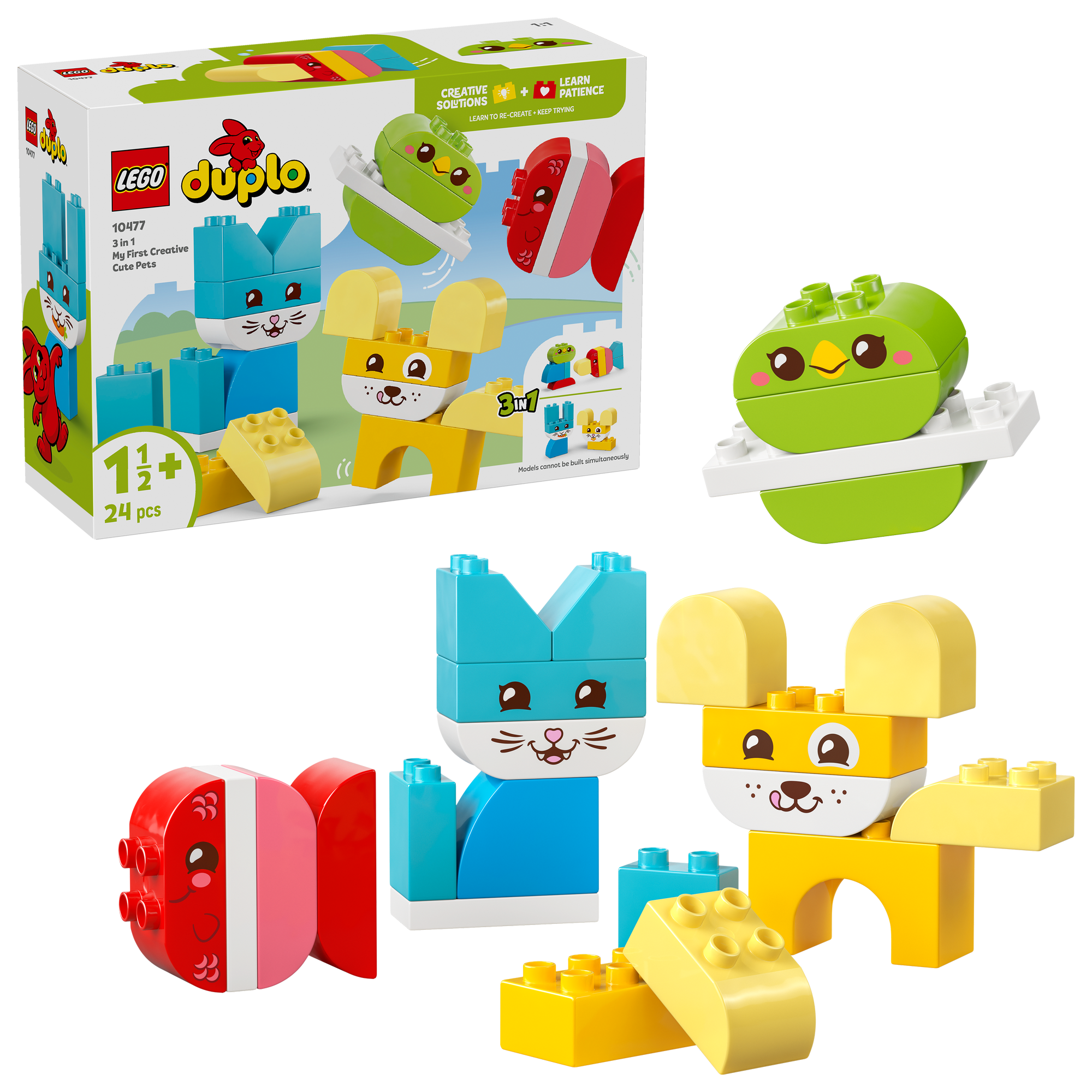 Læringslegetøj til små børn – Fyld jeres legetid med farver og kreativitet med sættet 3-i-1 Kreative søde kæledyr (10477), hvor små byggere kan lære om farver ved at lave en række LEGO® DUPLO® legetøjsdyr.