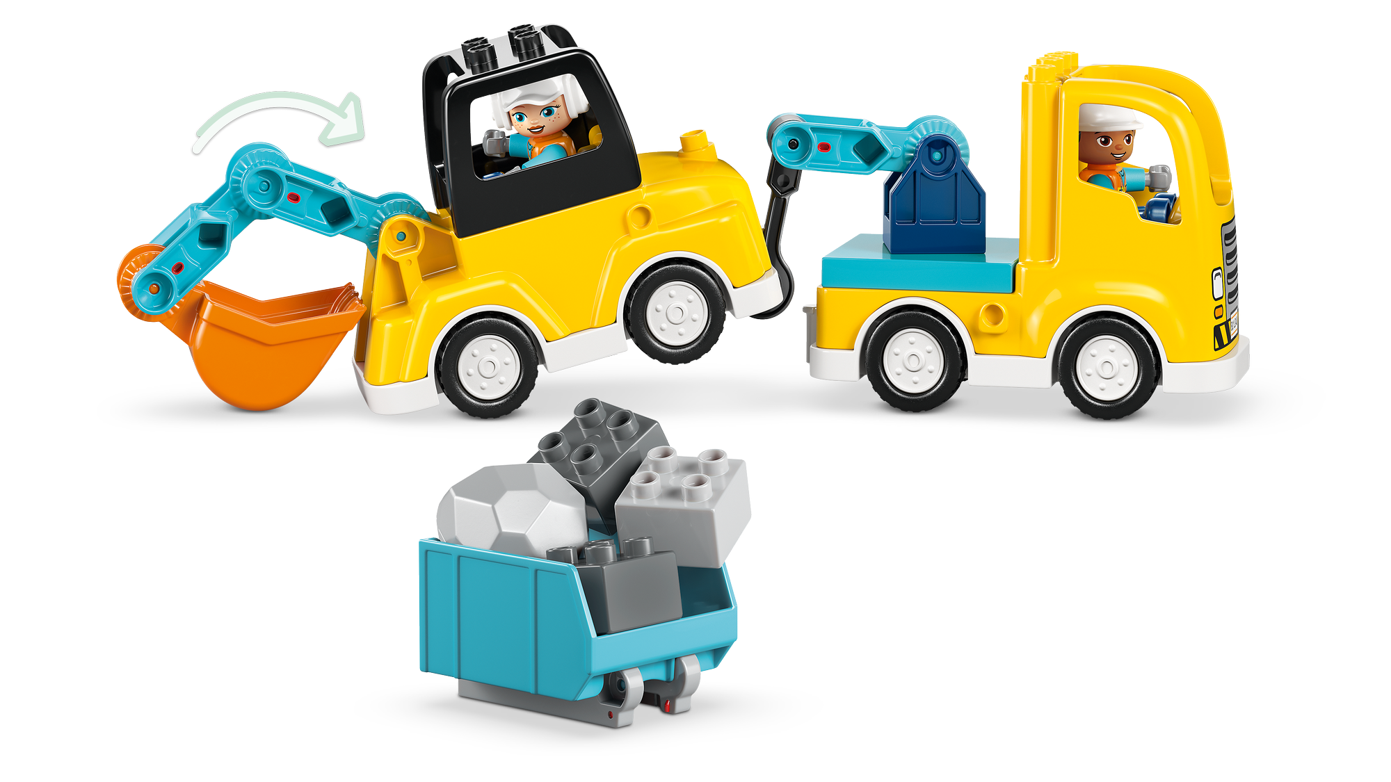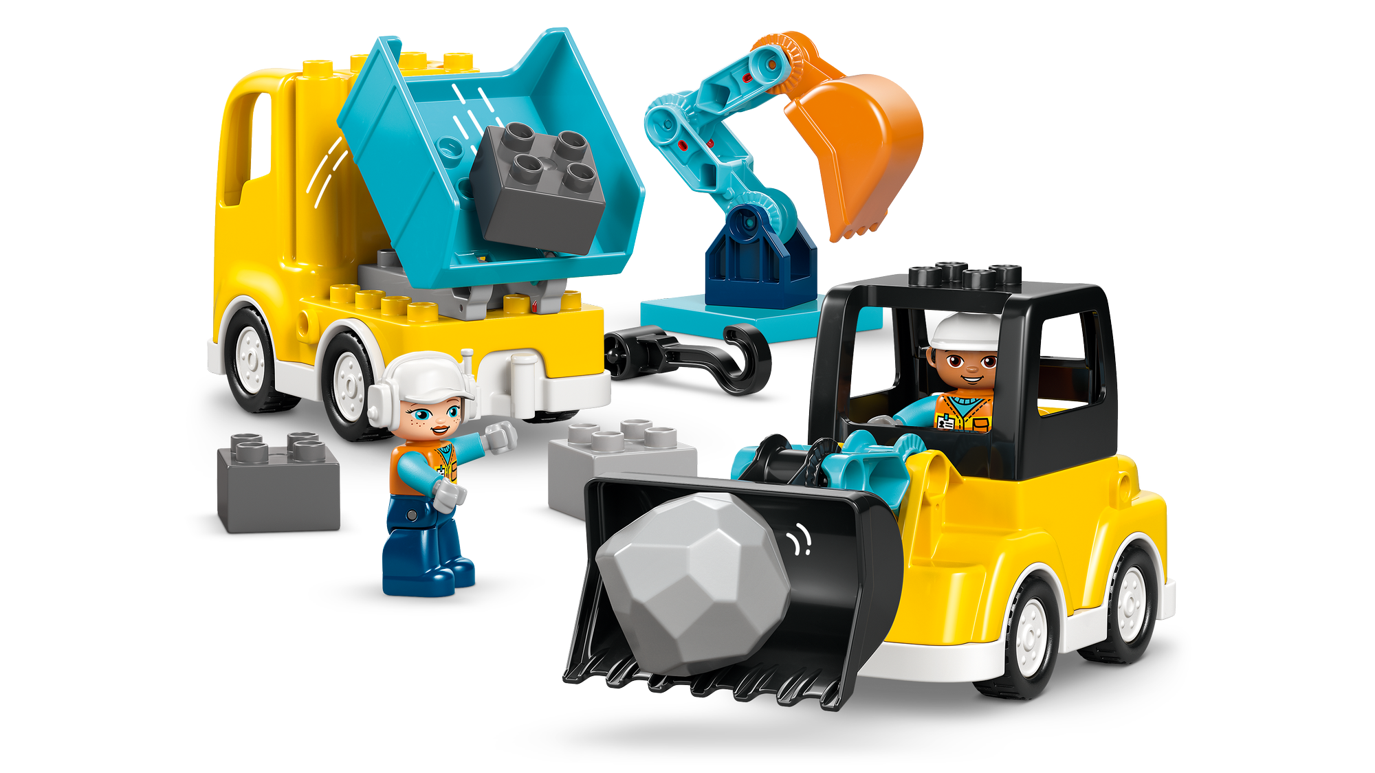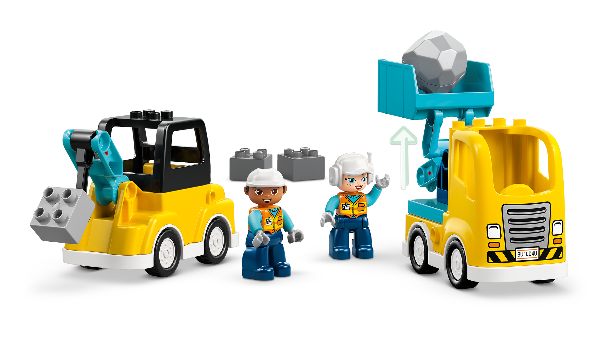 Leg bygningsarbejdere – Indeholder 2 legetøjsfigurer, som de mindste kan bruge til at køre, styre og betjene køretøjerne for at få arbejdet gjort.