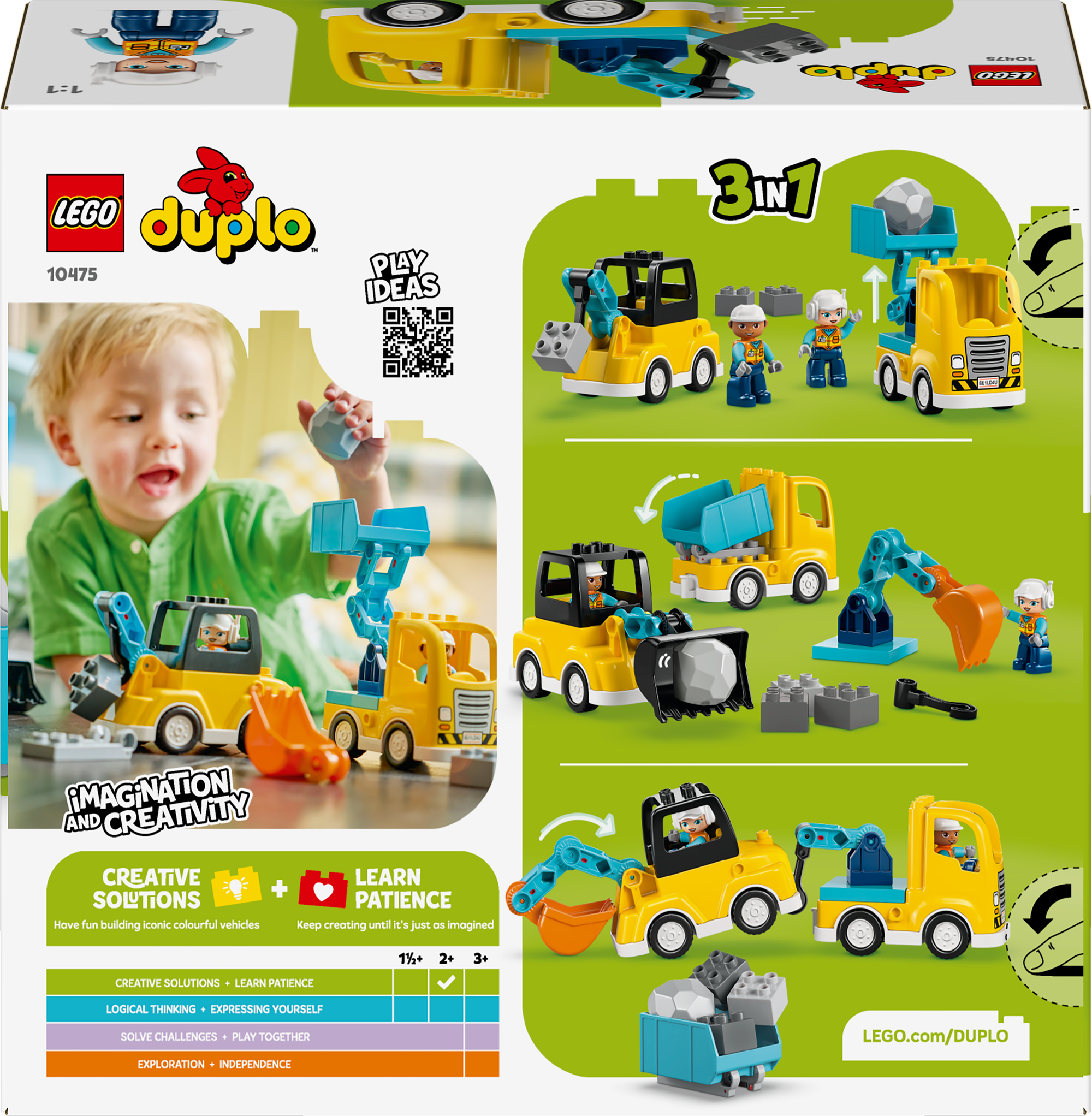 Byggelegetøj til de mindste – Sæt gang i små børns kreativitet med LEGO® DUPLO® By.sættet 3-i-1 Entreprenørmaskiner (10475), hvor tumlinger kan bygge 6 forskellige maskiner med 22 klodser.
