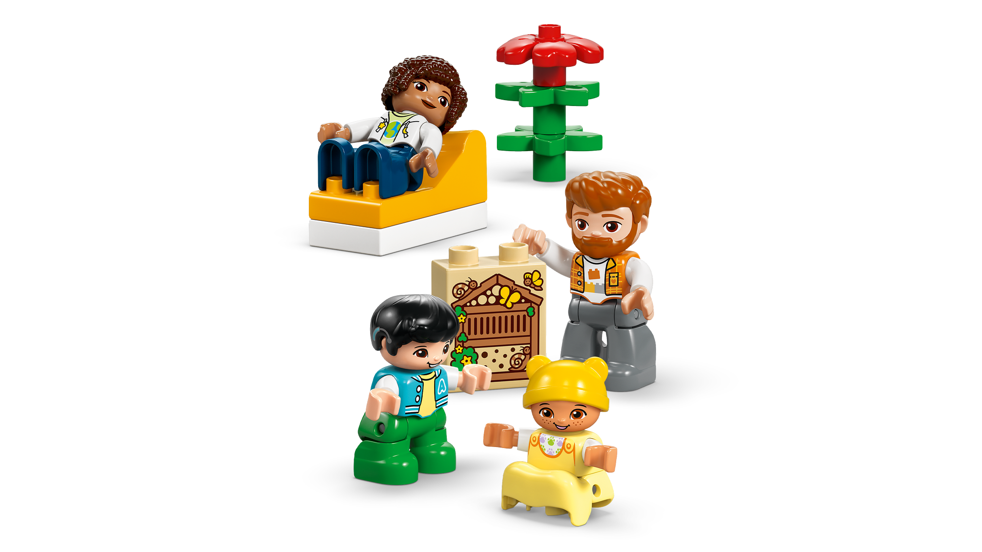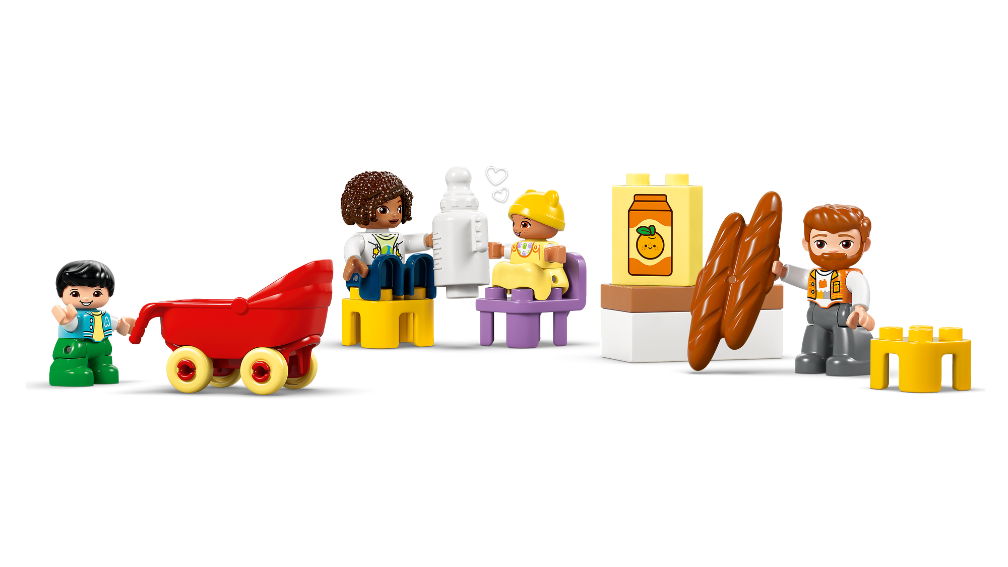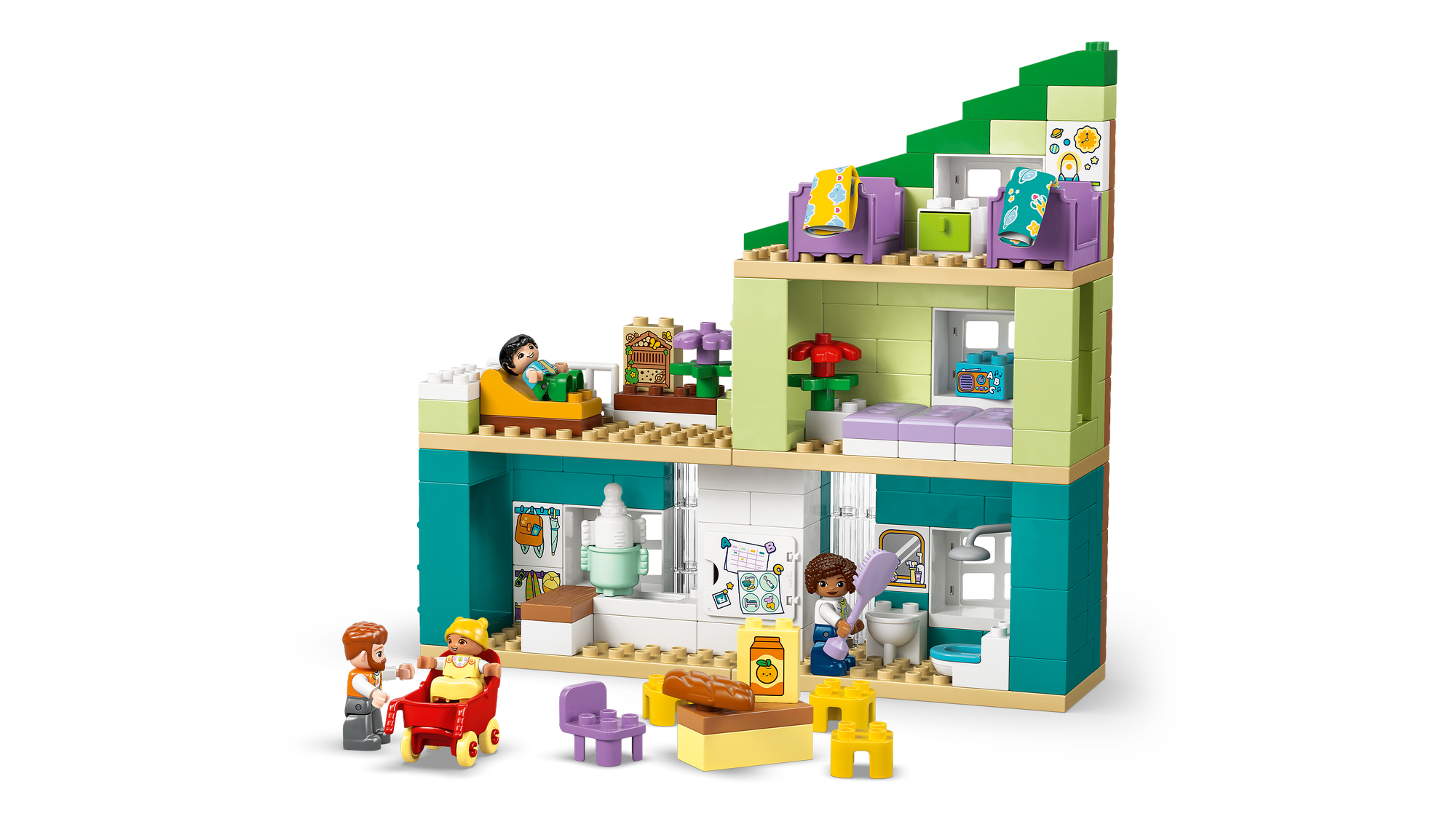 Udspil øjeblikke fra familiens hverdag – Ved hjælp af LEGO® DUPLO® By-sættet med figurer af en mor, en far, et lille barn og en baby kan de mindste udforske følelser og fortælle historier om relationer i familien.