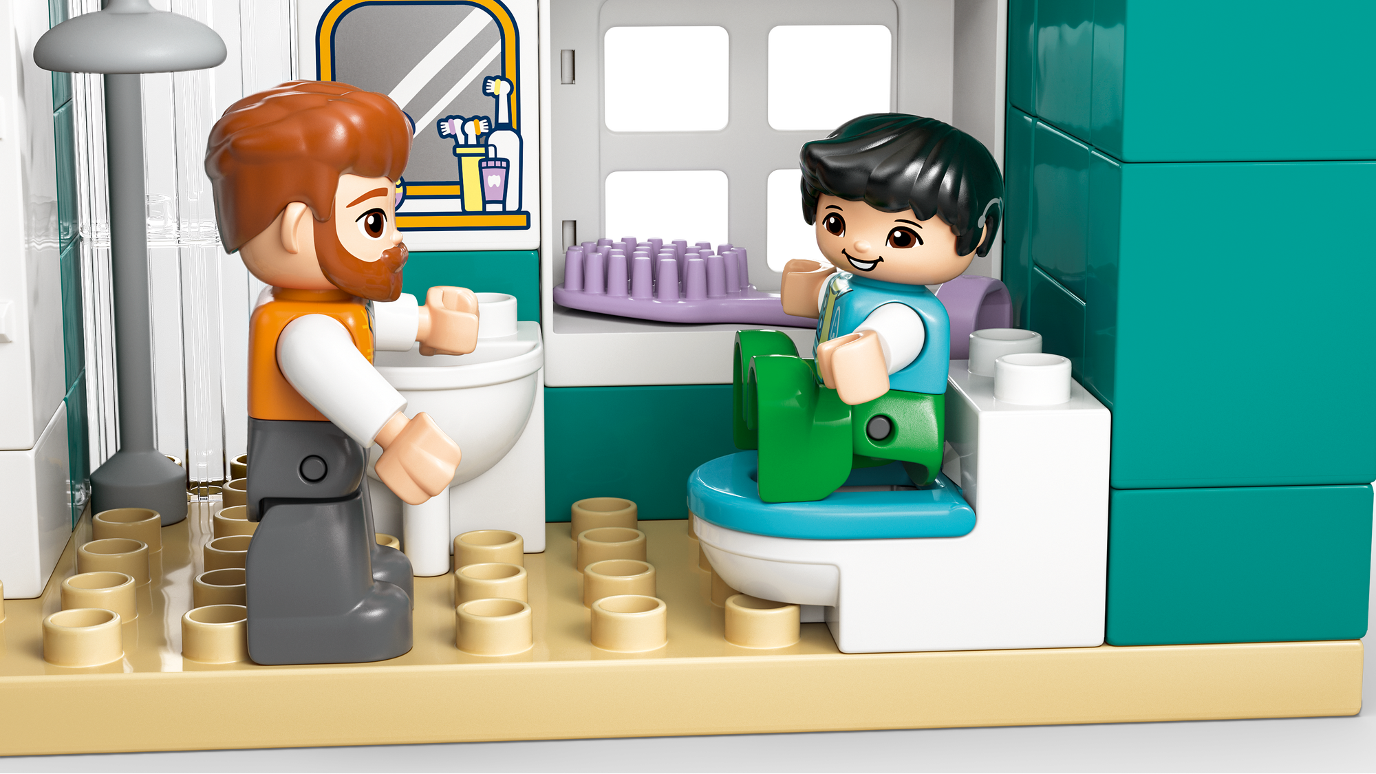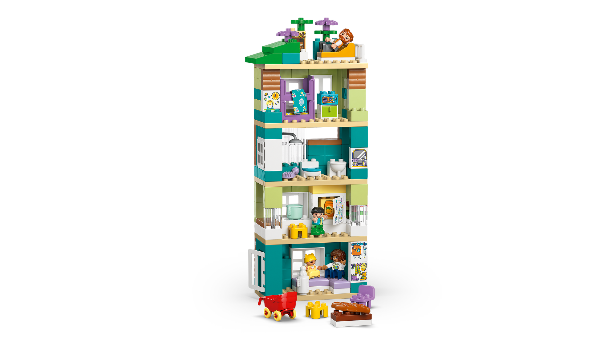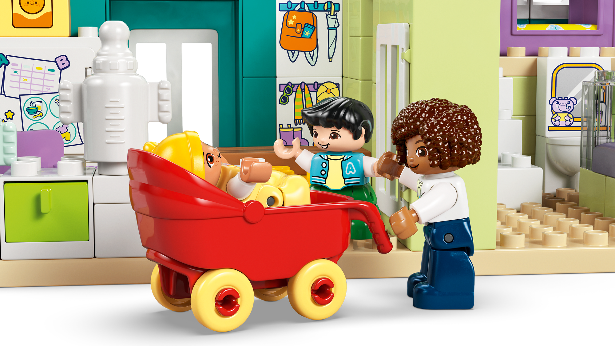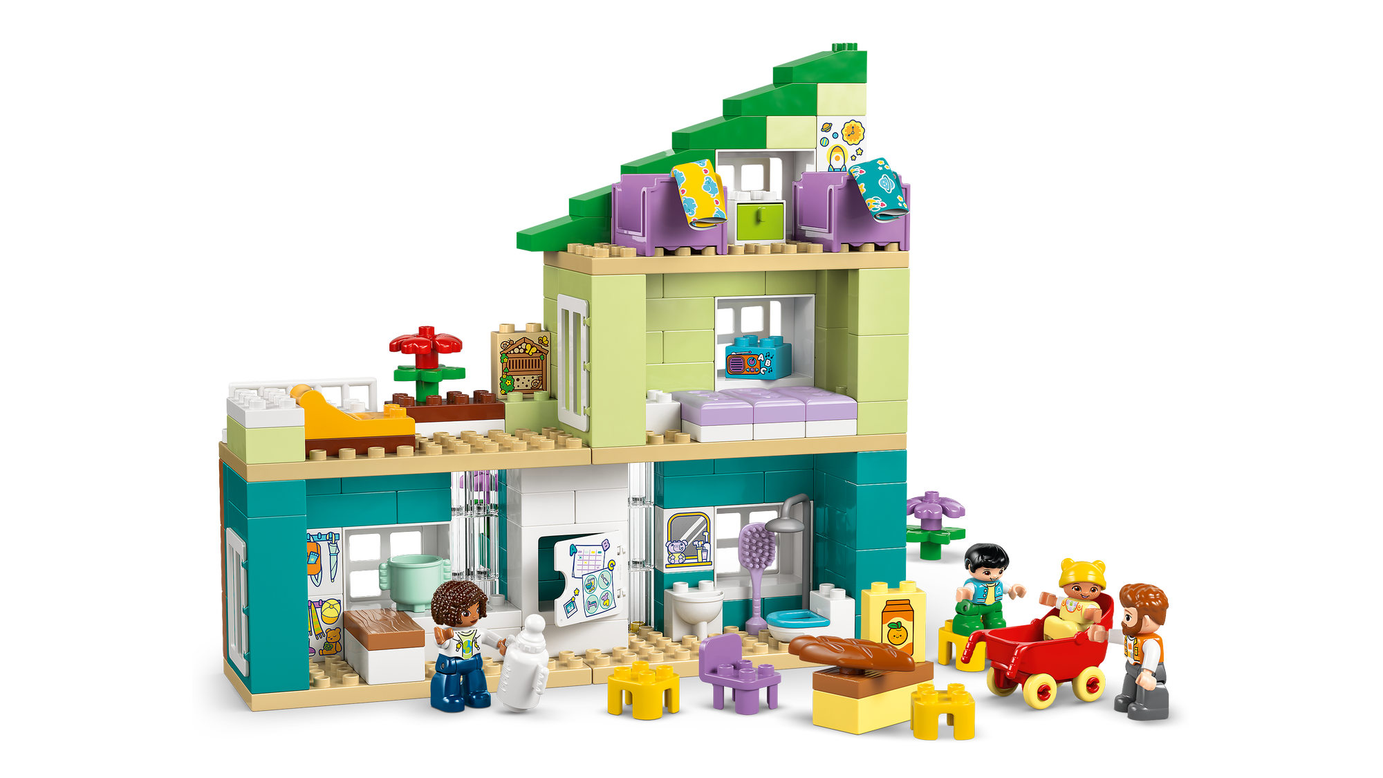 Udspil øjeblikke fra familiens hverdag – Ved hjælp af LEGO® DUPLO® By-sættet med figurer af en mor, en far, et lille barn og en baby kan de mindste udforske følelser og fortælle historier om relationer i familien.