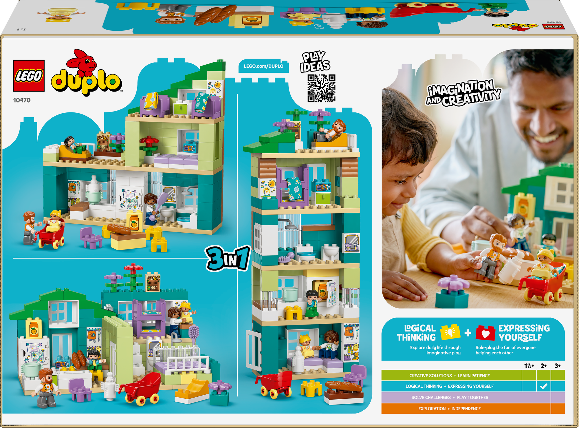 Styrk børns byggefærdigheder – LEGO® DUPLO® huset støtter udviklingen af små børns kreativitet og følelsesmæssige intelligens, og detaljer som døre og vinduer, der kan åbnes, styrker deres finmotorik.