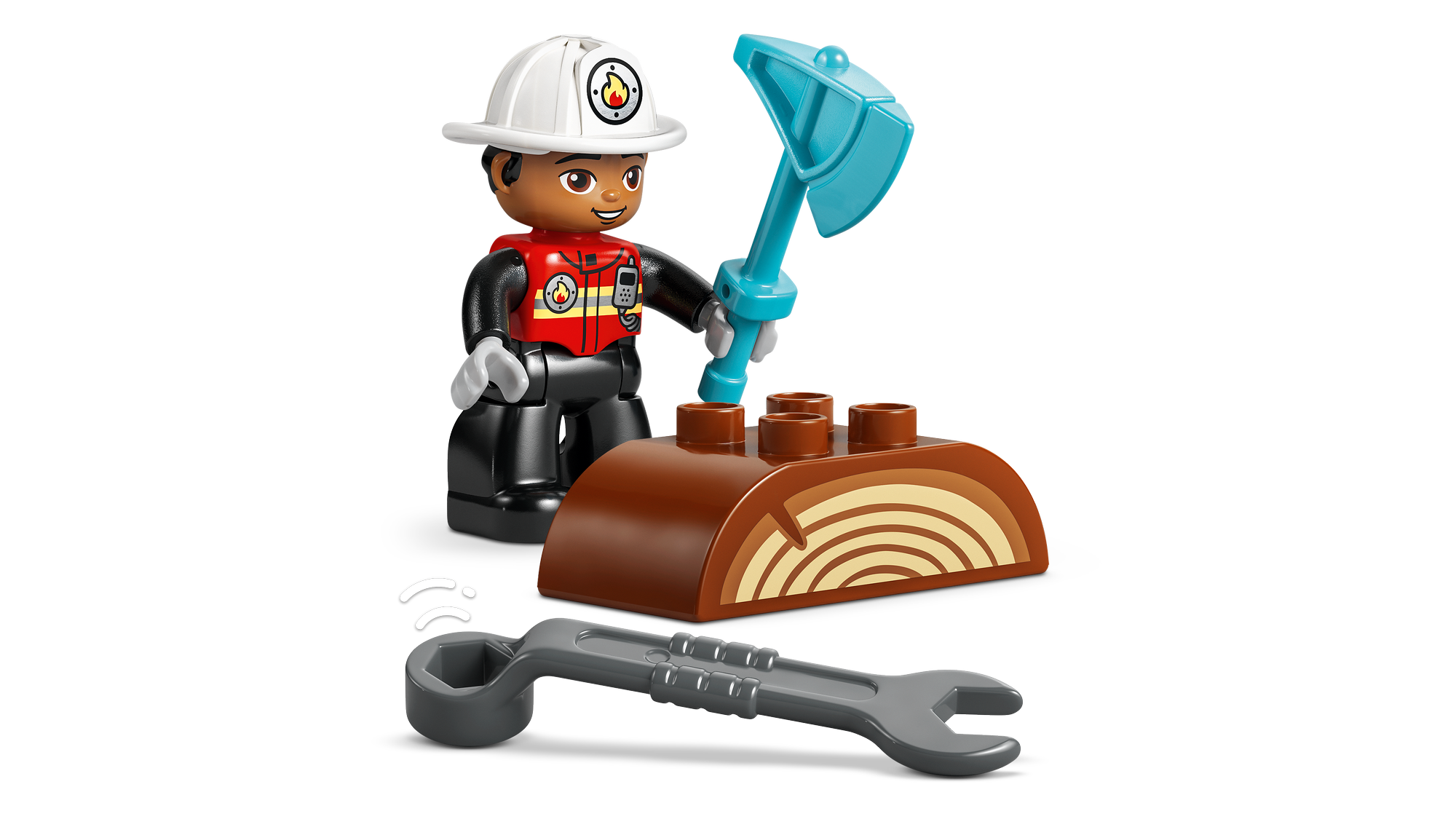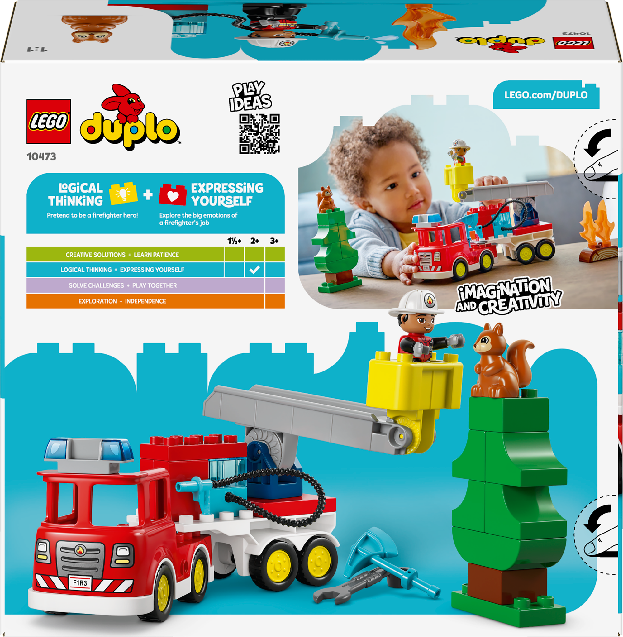 Sjove detaljer og funktioner – Indeholder en model af en brandbil med en aftagelig anhænger, en brandmandsfigur, et LEGO® DUPLO® egern, en økse og en skruenøgle, der inspirerer til fantasifuld leg om at blive dagens helt.