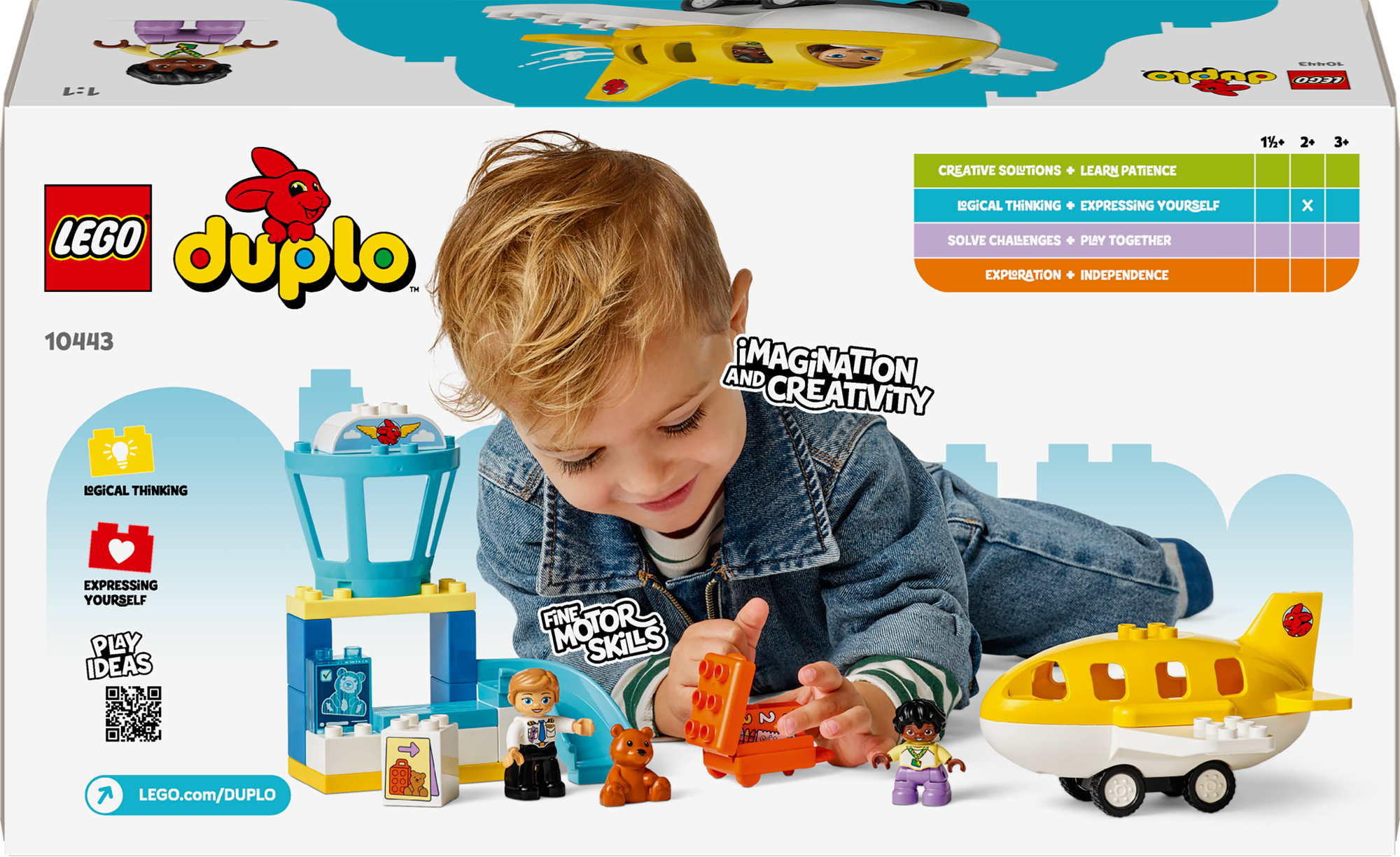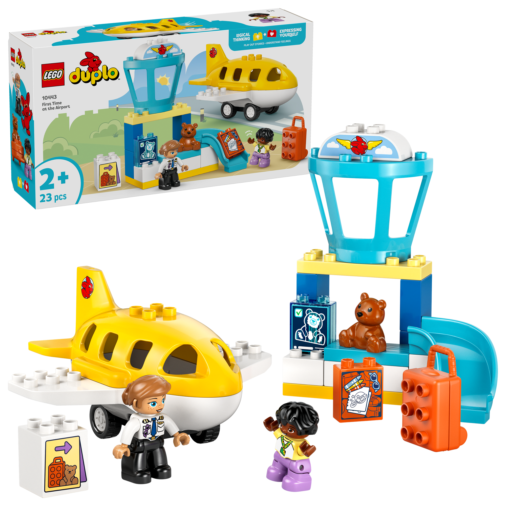 Legetøj med rolleleg til små børn – Det fantasifulde legetøj indeholder figurer af et barn og en pilot samt en LEGO® DUPLO® bamse, der giver de mindste forskellige roller, de kan udspille.