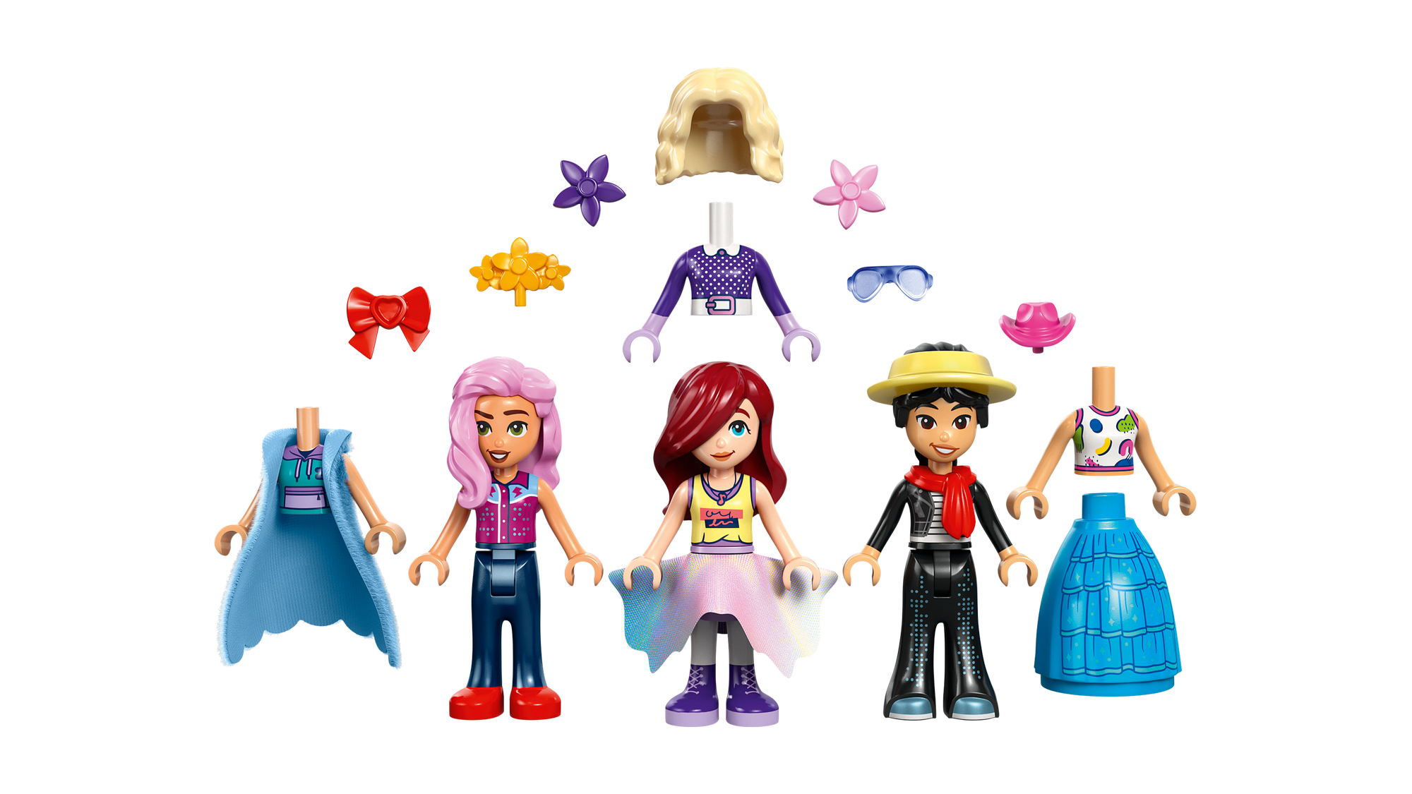 Sammensæt outfits – Piger og drenge kan lege modedesignere med LEGO® Friends byggesættet Heartlake Citys modeshow (42685) og give minidukkerne forskellige kombinationer af overkroppe, hårelementer, hatte og rekvisitter til et catwalkshow.