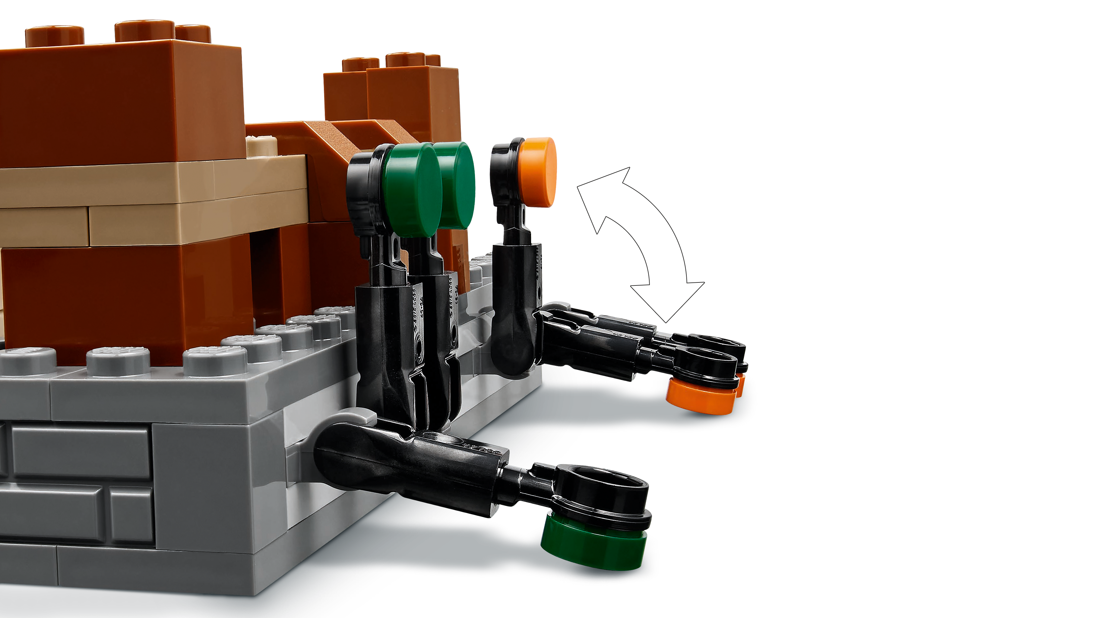 Interaktivt legetøj med Minecraft®-tilbehør – Børn bruger våben, eliksirer og håndtag, der kan fastgøres på figurerne, så de kan styre dem, mens de genskaber kampe fra videospillet og udforsker deres egne eventyr.