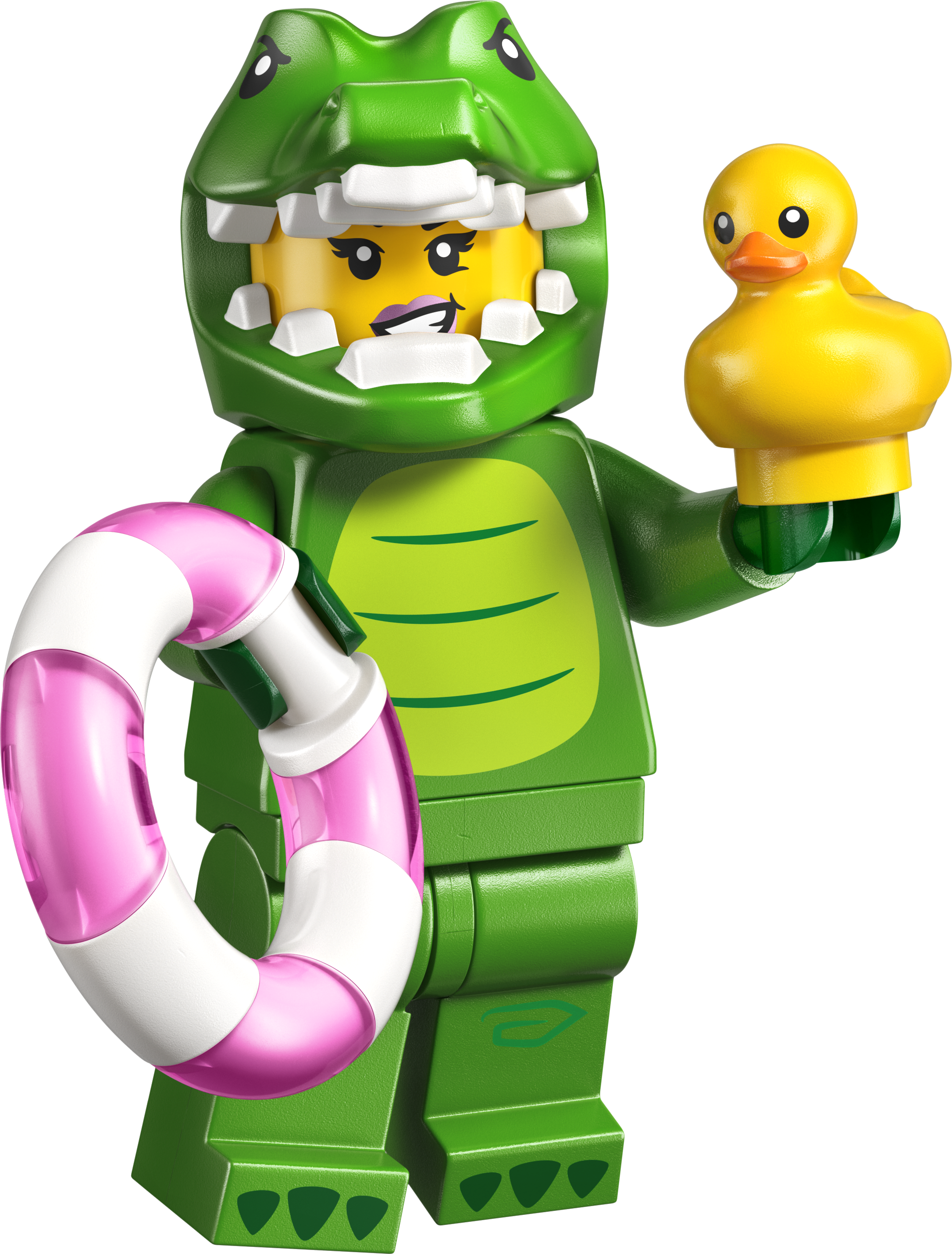 1 ud af 12 Legetøjsdyr – I hver æske kan børn finde 1 ud af 12 samler-minifigurer med følgende kostumer: løve, frø, krokodille, abe, koala, papegøje, hund, påskehare, guldfisk, kat, påfugl og delfin.