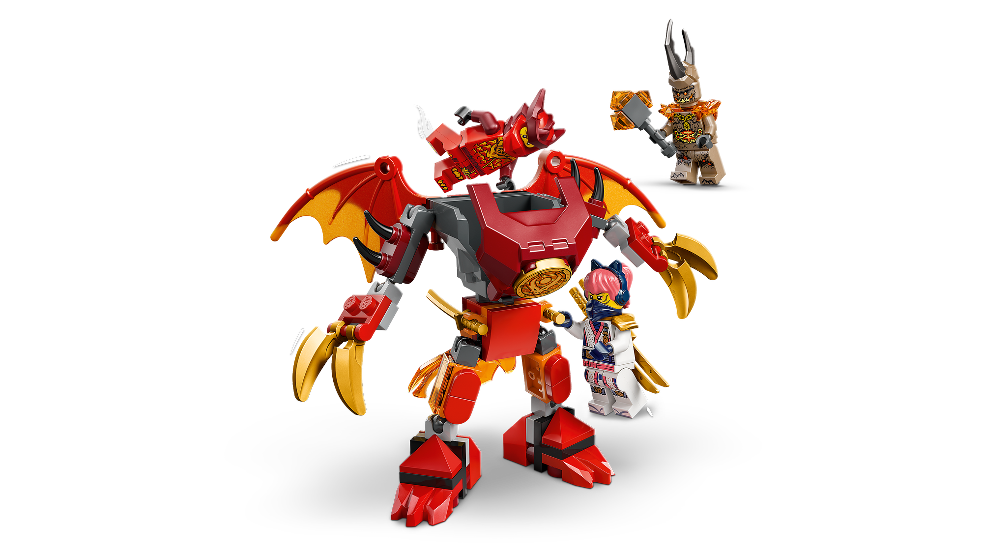 Mech-legetøj til børn – Med byggelegetøjet Kais drage-mech – kamppakke (71851) kan drenge og piger fra 6 år lege rolleleg og udspille scener fra sæson 4 af tv-serien NINJAGO®: Dragene vågner.