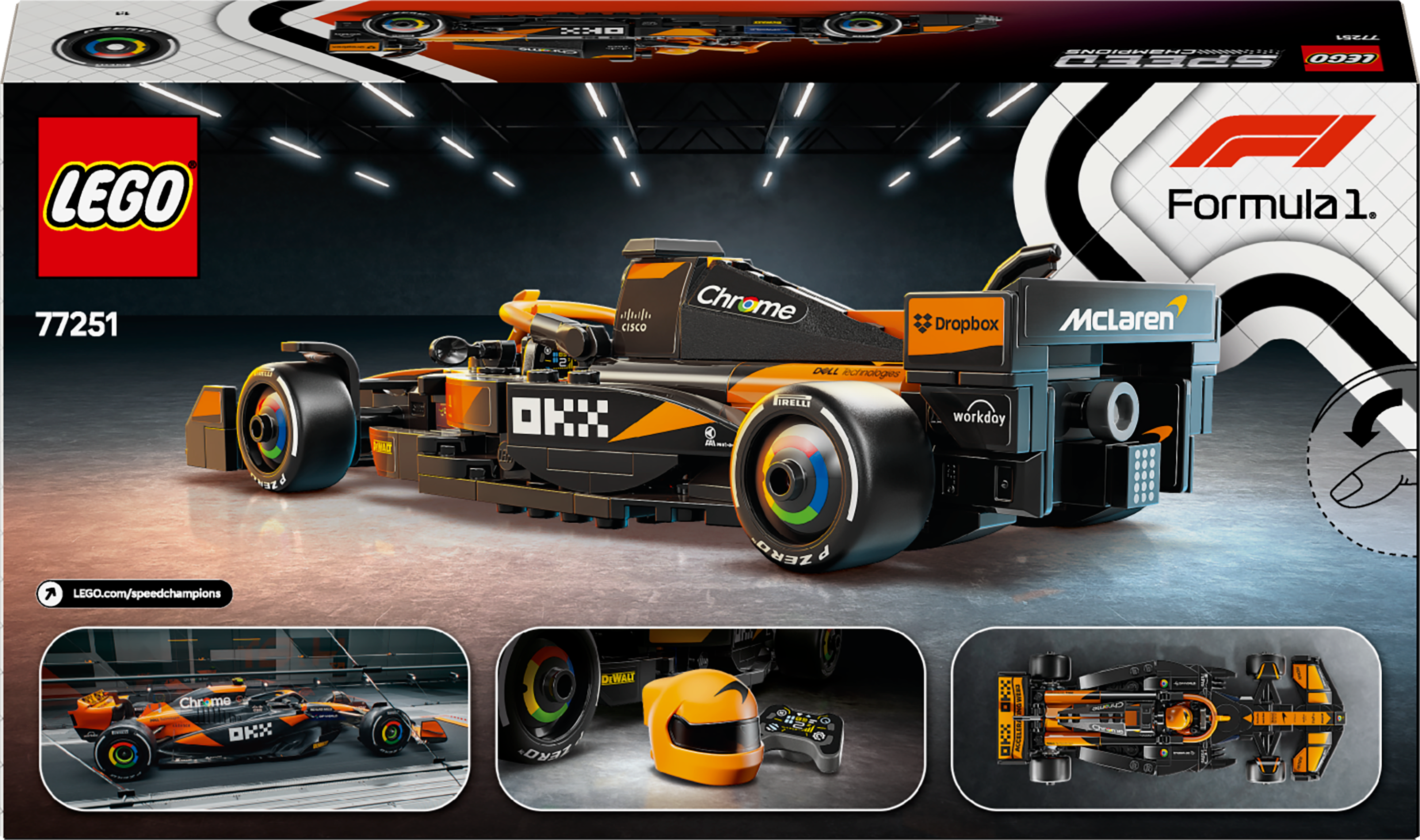 1 minifigur – Køretøjssættet indeholder en minifigur af en kører iført McLaren-dragt og hjelm med vinge, og børn kan anbringe køreren i cockpittet for at udspille spændende raceraction gennem rolleleg.