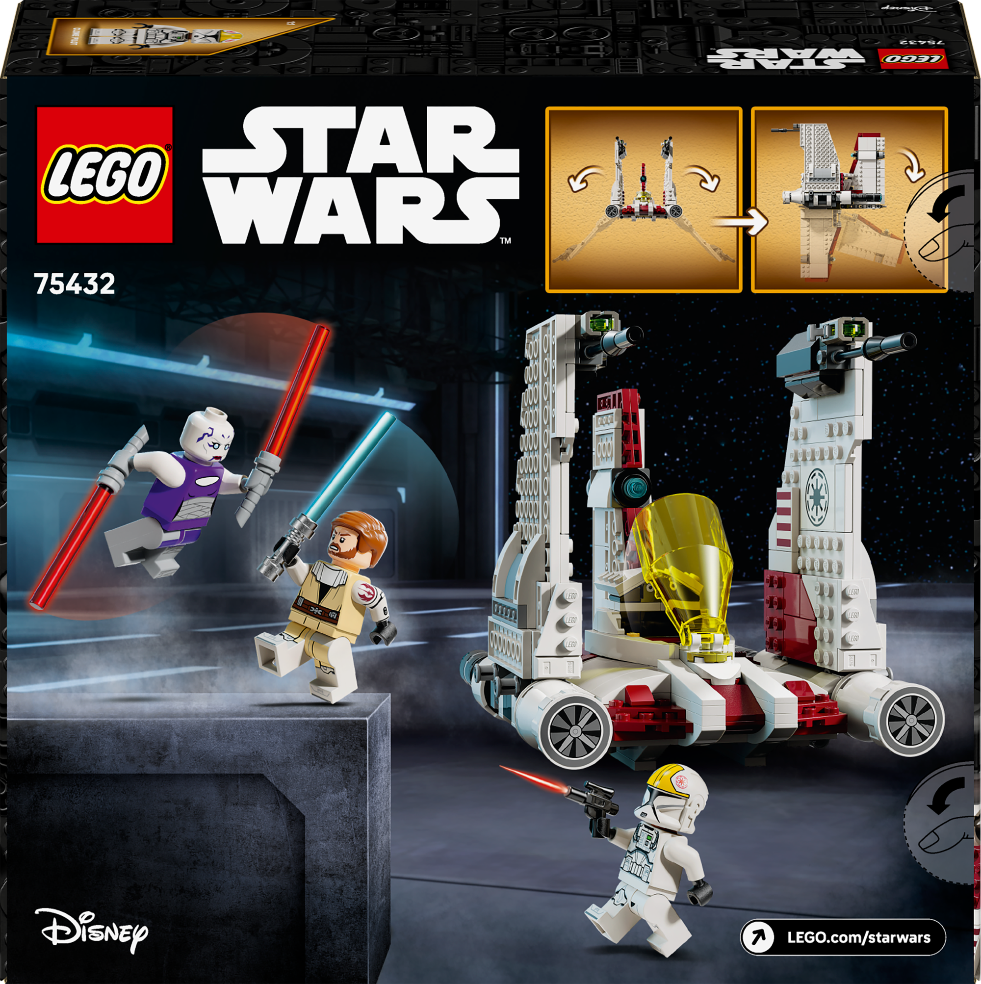 Klodsbygget LEGO® Star Wars™ stjernejager – Omfatter et cockpit, der kan åbnes, vinger, der kan justeres til flyveposition og landingstilstand, samt 2 knopskydere til fantasifuld kampleg.