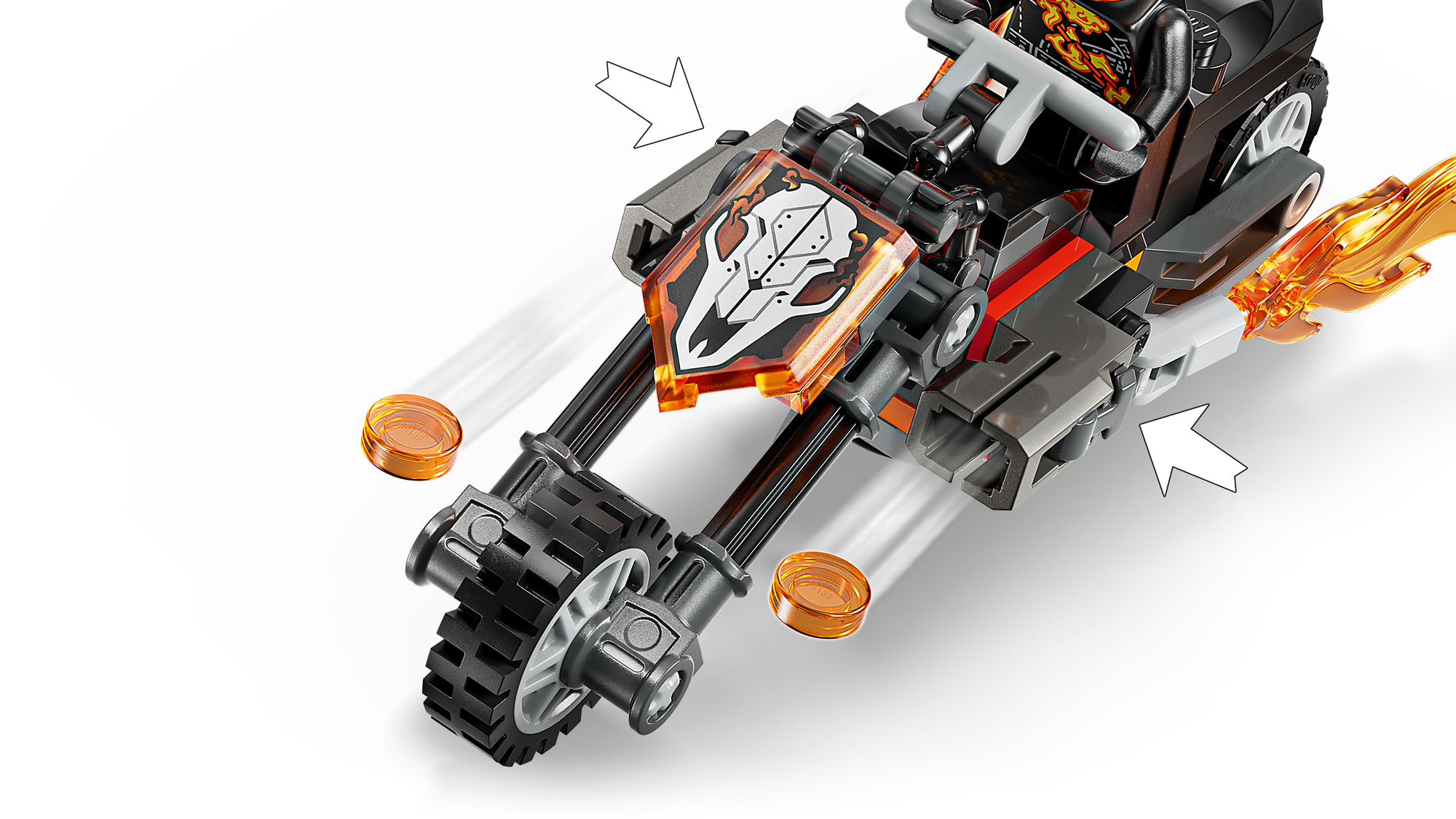 Størrelse – Motorcyklen i byggesættet med 72 elementer er over 4 cm høj, 14 cm lang og 5 cm bred.
