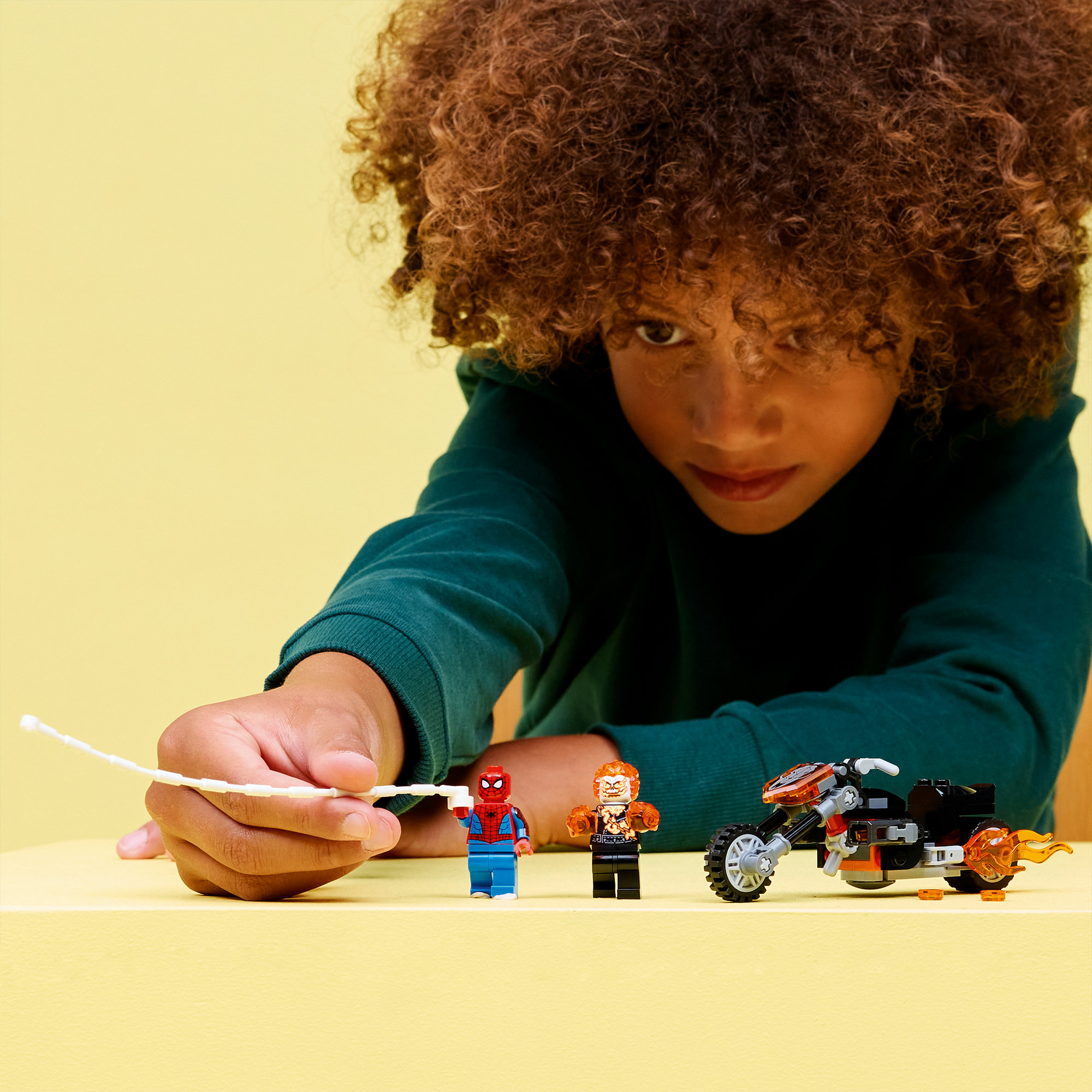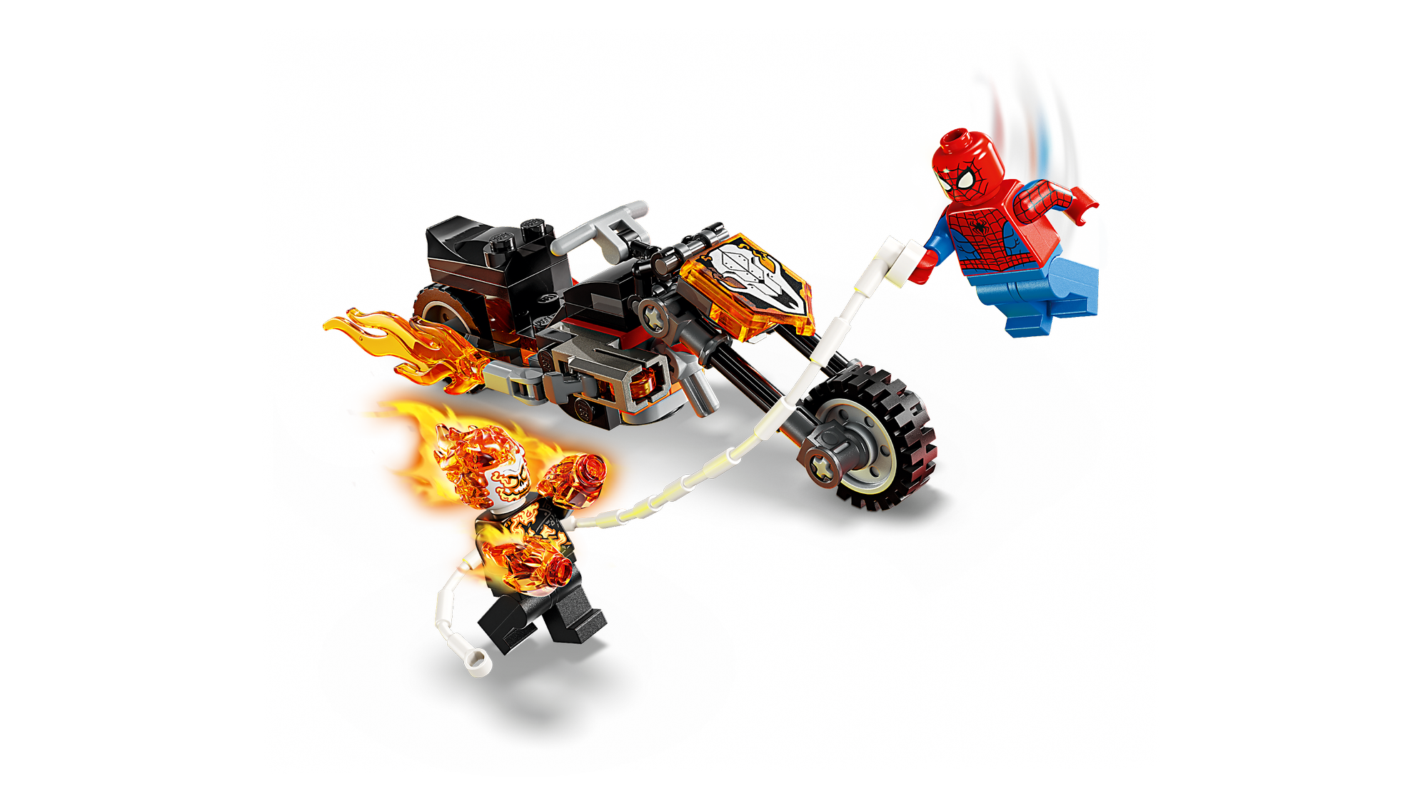 Genoplev episk kampaction – Børn kan genskabe en jagt i høj fart, hvor Spider-Man kaster sit spindelvævsreb mod Ghost Riders motorcykel, mens flammerne står ud af udstødningsrøret og fra skurkens hænder.