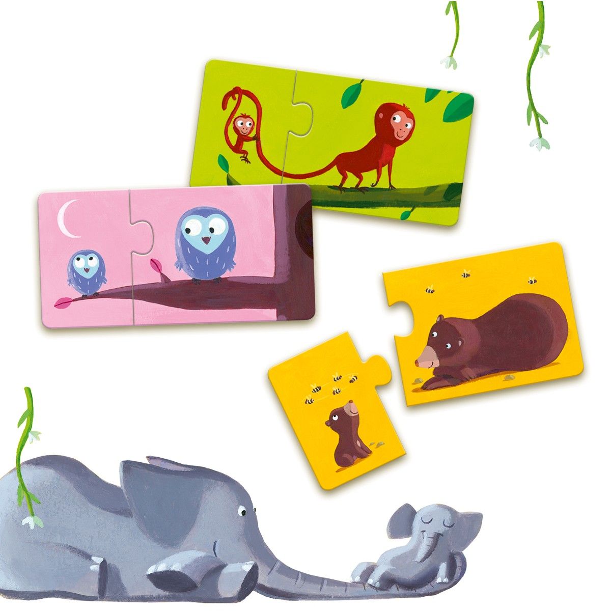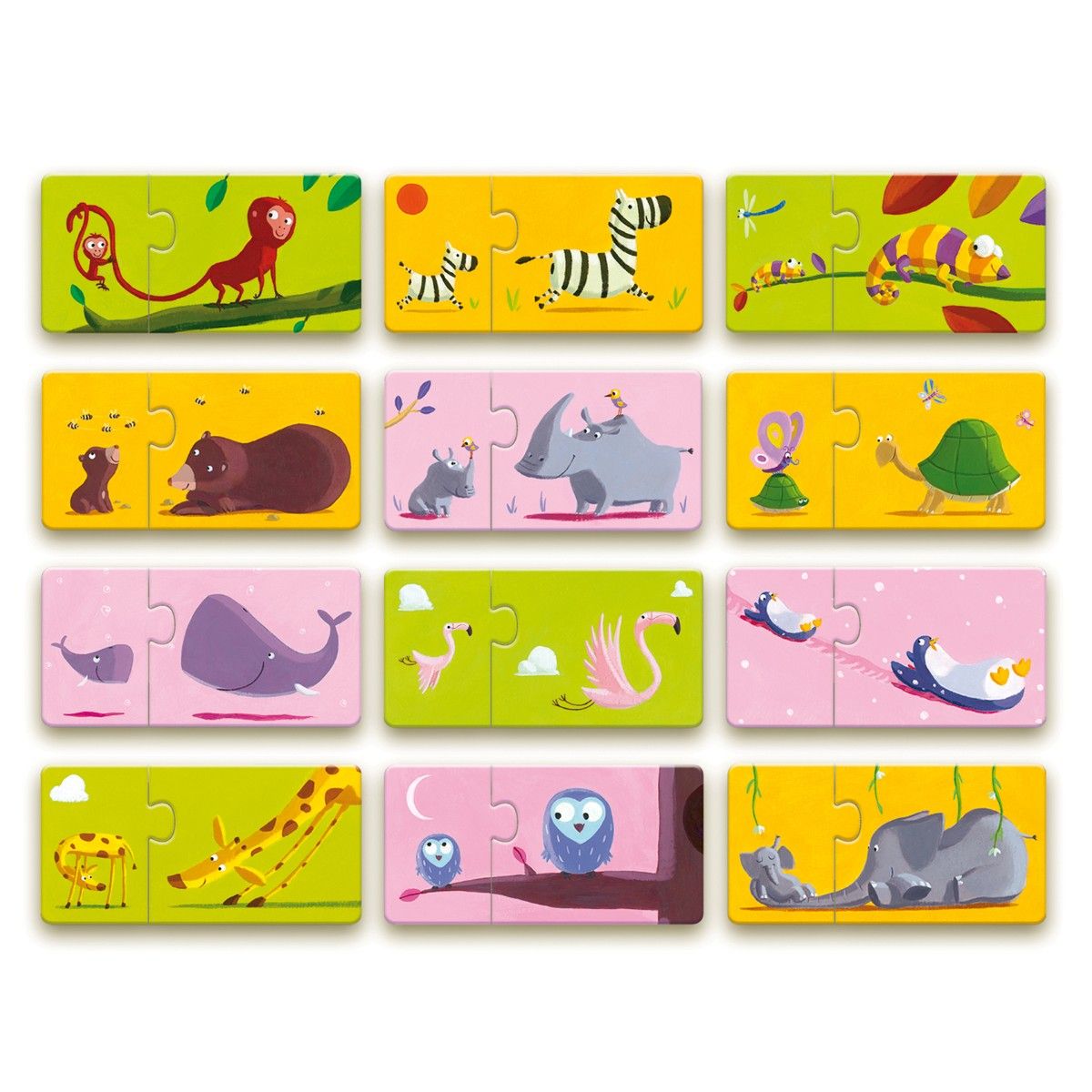 Puzzle Duo - Mor & Barn Spil fra Djeco er det perfekte valg for dit barn. Dette puslespil er designet til børn fra 2 år og op, hvilket gør det ideelt til at introducere de mindste til puslespillets verden. Spillet indeholder 10 små puslespil, som tilsammen udgør 20 brikker, og opgaven er at finde de rigtige par af mor- og barn. Spillet er både sjovt og lærerigt og hjælper med at udvikle dit barns observationsevner og logiske tænkning, når de forsøger at finde ud af, hvilke brikker der passer sammen. Ud over at styrke barnets kognitive evner, skaber det også en hyggelig stund for forældre og børn at dele, hvor I sammen kan opleve glæden ved at løse puslespil. Det farverige design og de enkle motiver gør det let for de små hænder at håndtere brikkerne, mens det visuelle indhold fastholder deres interesse. Puzzle Duo er en oplagt gaveidé til de yngste puslespilsentusiaster.