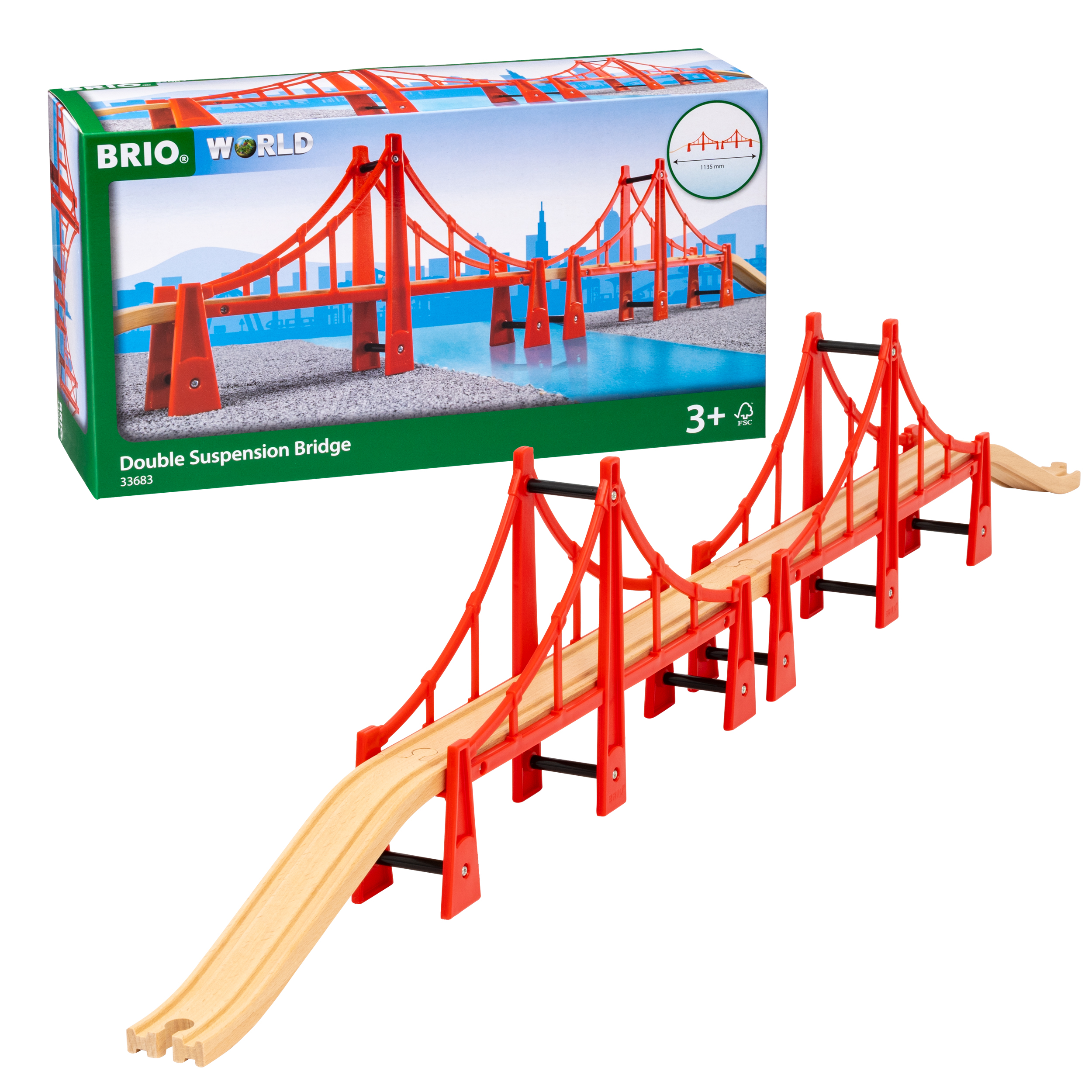 Lang Hængebro fra BRIO er en spændende tilføjelse til ethvert tog- eller bilsæt for børn fra 3 år og op. Denne imponerende hængebro strækker sig over en længde på over 1 meter, hvilket giver mulighed for kreativ leg og konstruktion. Den består af to bromoduler, der kan samles for at skabe en stabil og underholdende passage for tog eller biler.