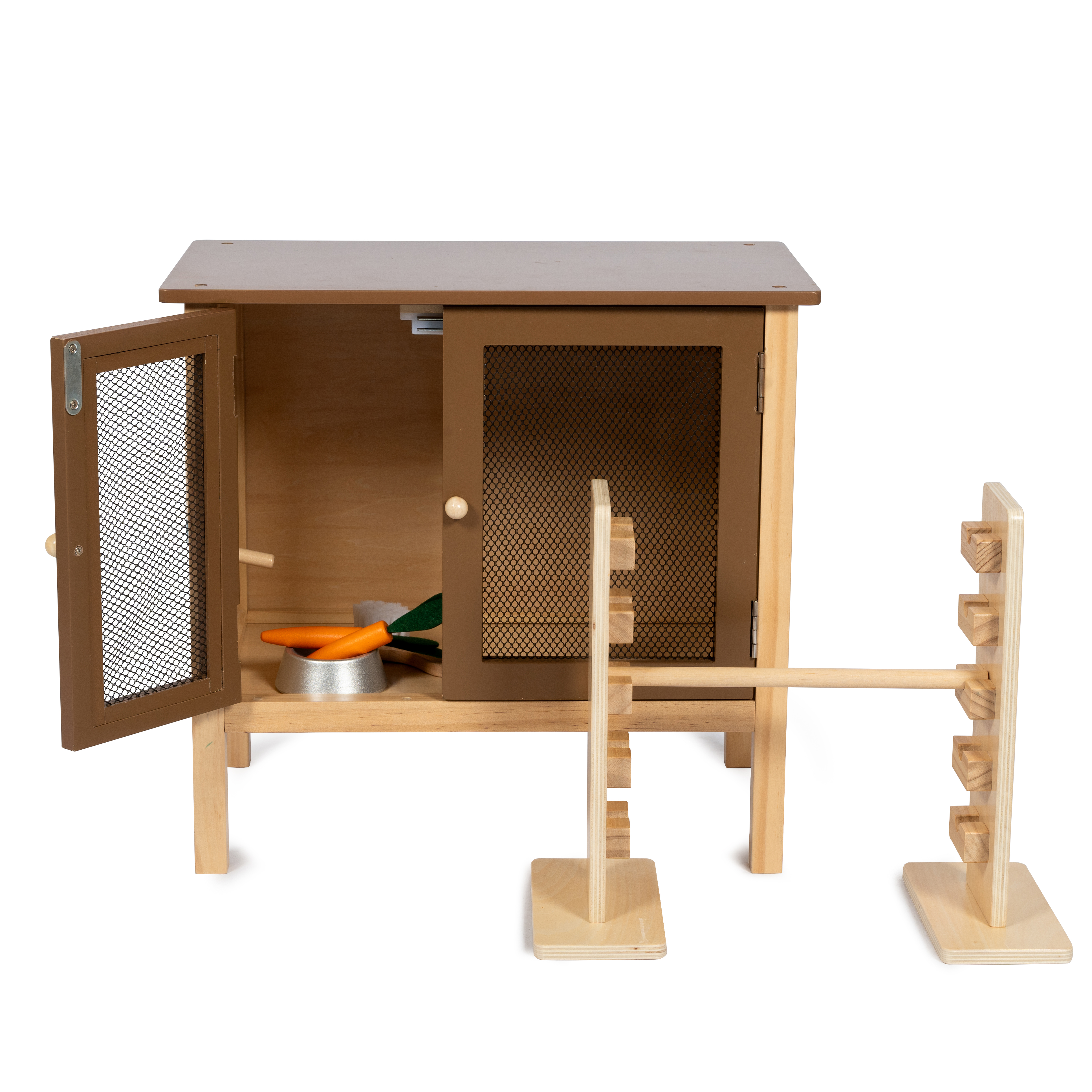 - Indeholder et lille bur, spring og forskelligt mad og tilbehør