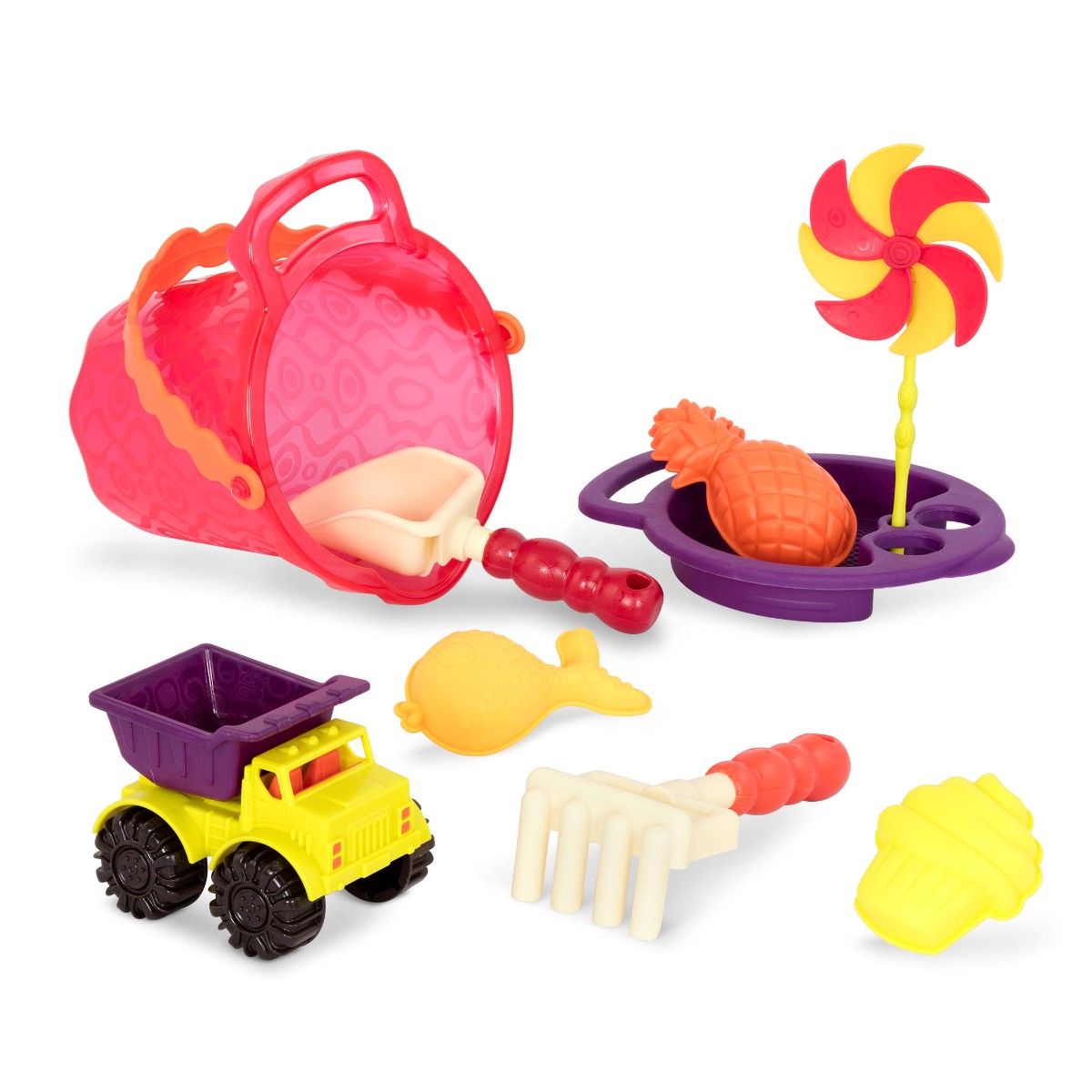 Dette omfattende spandsæt inkluderer alt, hvad dit barn behøver for en sjov dag i sandet. Sættet kommer med en robust spand, som er nem at bære rundt på, samt forskellige sandforme, der opmuntrer til kreativitet og fantasi. Der medfølger også en skovl og en rive, som hjælper dit barn med at grave, bygge og forme deres egne sandkreationer. Desuden er der inkluderet en lastbil med tippelad, hvilket tilføjer en ekstra dimension af leg, når sandet skal transporteres rundt. Med Sands Ahoy Spandsæt fra B. Toys kan du give dit barn timer af sjov og kreativ udfoldelse i det fri.