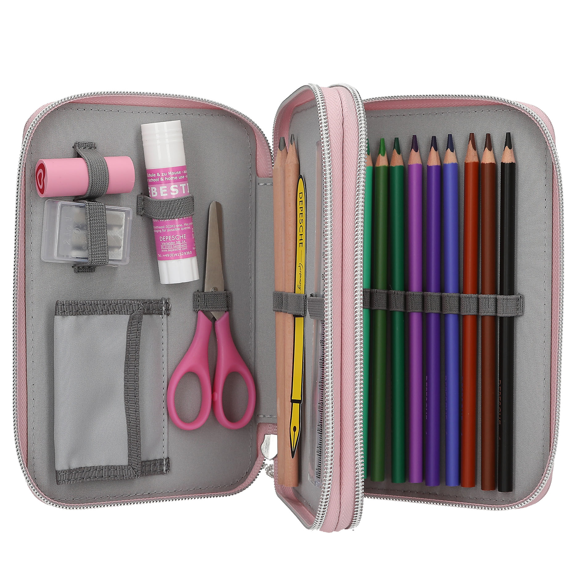 - Inkl. 2 blyanter, 1 blyantspidser, 1 viskelæder, 1 lineal, 1 saks, 1 limstift og 18 farveblyanter