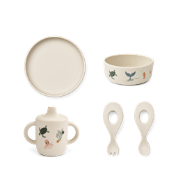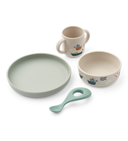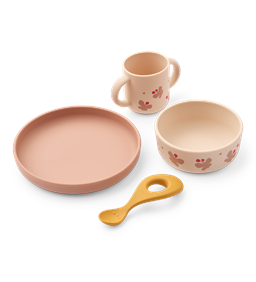 Et godt spisesæt til børn kan gøre en forskel i hverdagen. Skridsikre bunde, ergonomiske greb og lette materialer gør det lettere for de små at spise selv. Og mindsker spild og frustration ved bordet. Flere af spisesættene indeholder matchende tallerken, skål og kop mens andre sæt indeholder matchende tallerken, kop og bestik. Med andre alt hvad barnet har behov for til en god spiseoplevelse.