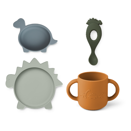 Vivi 4-pak Spisestel, Dino Blue Multi Mix