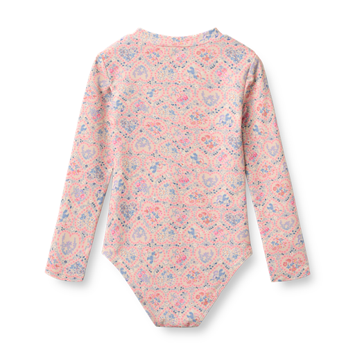 Margot L/S Badedragt, Pink Heart Flowers, 122 cm
