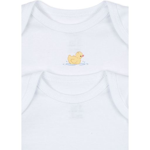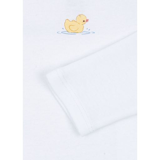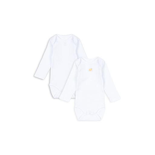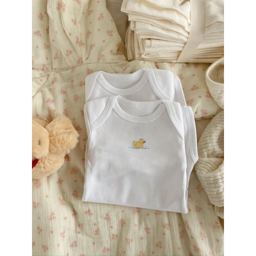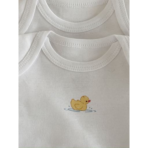 - Broderet and under halsen på den ene body