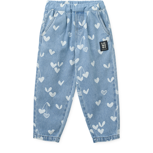 Borris Printed Denim Bukser, Sweethearts/Light Blue Denim, 122 cm