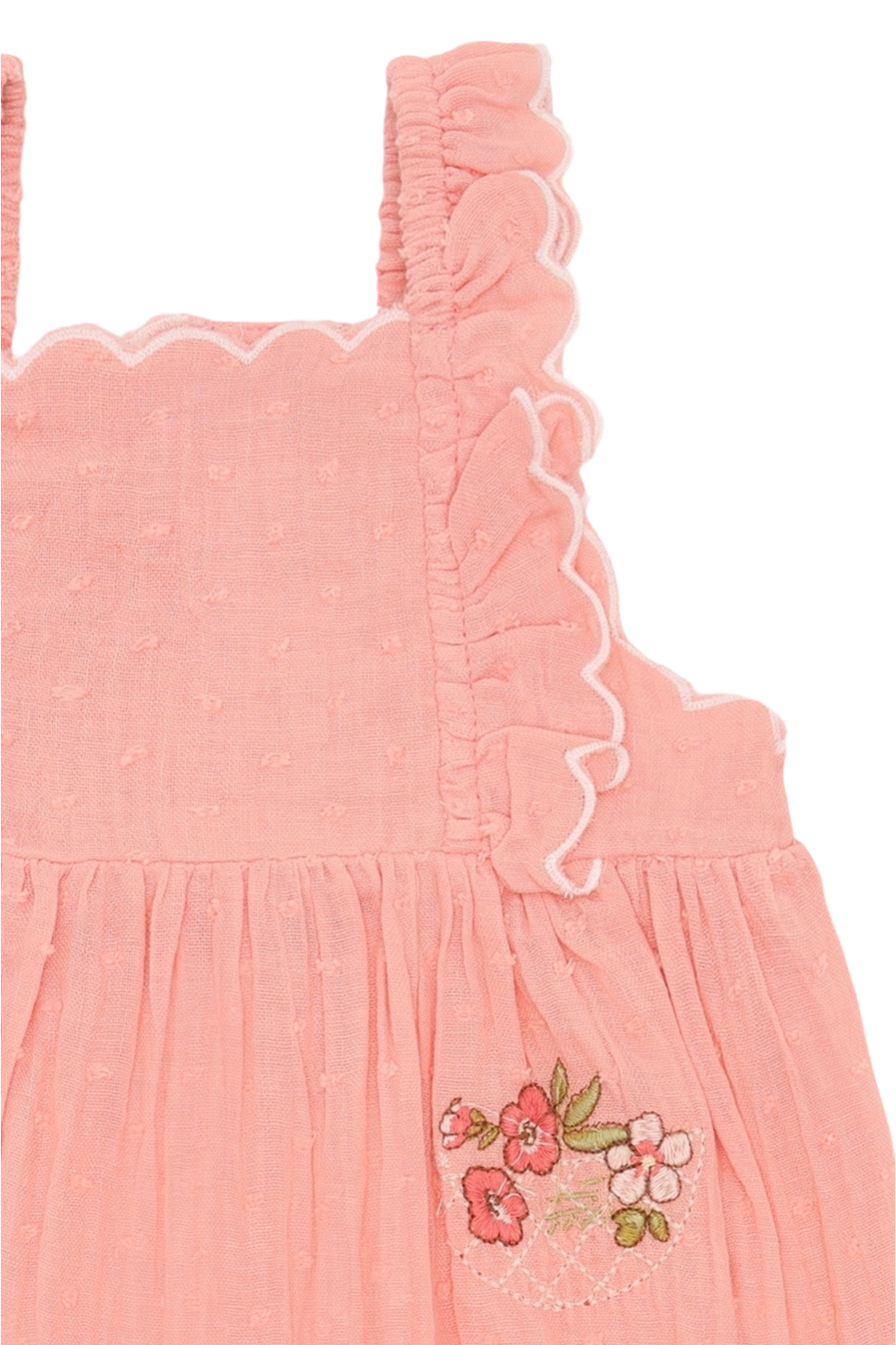 • Broderede blomster foran