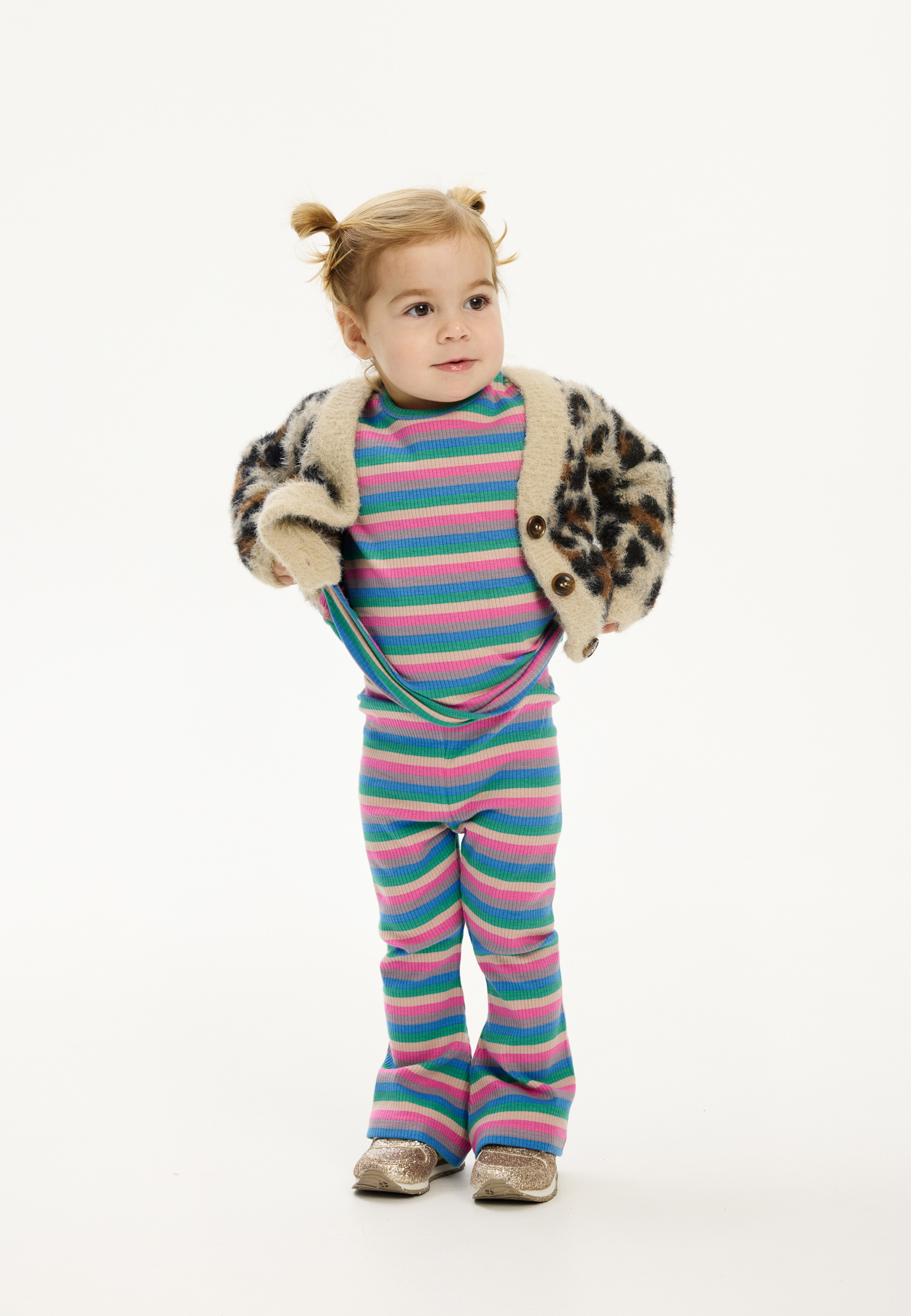 Polly Flared Rib Bukser, Multi Striped, 104 cm