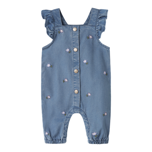Sage Denim Overalls, Denim Blue Flower EMB, 86 cm