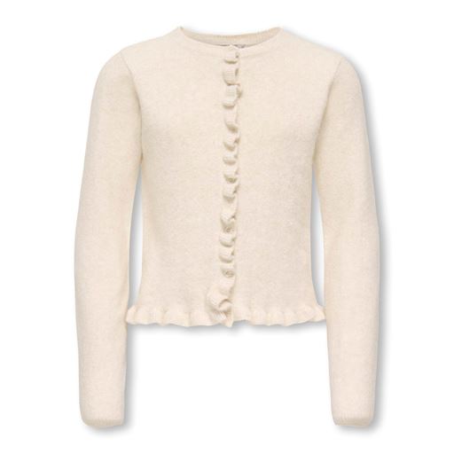 Shelda Life O-Neck Ruffle Cardigan, Birch Melange, 158-164 cm