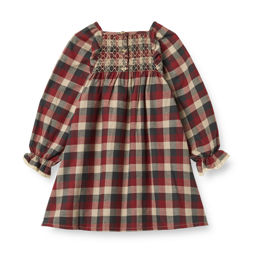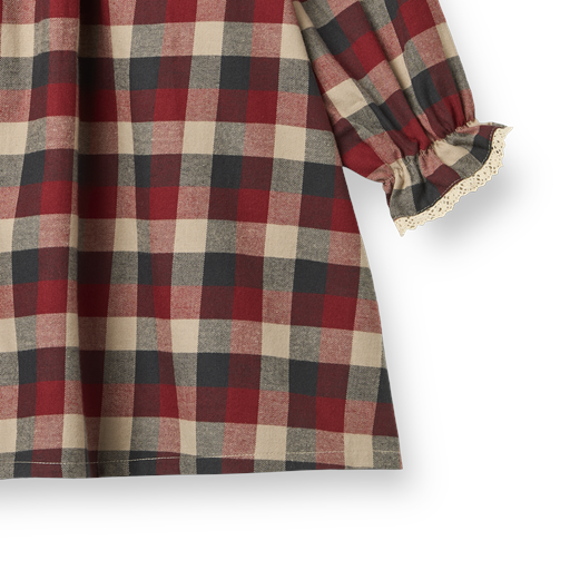 Bella Lace Kjole, Red Blue Check, 128 cm