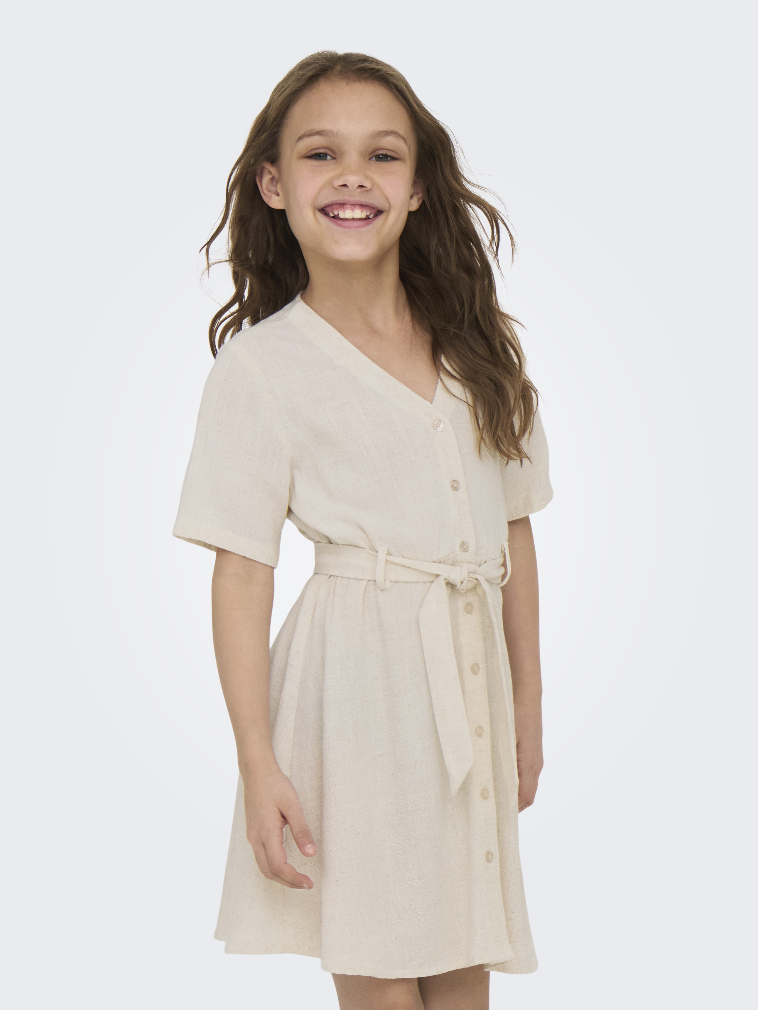 Siesta Linen Blend Belt Kjole, Moonbeam, 164 cm
