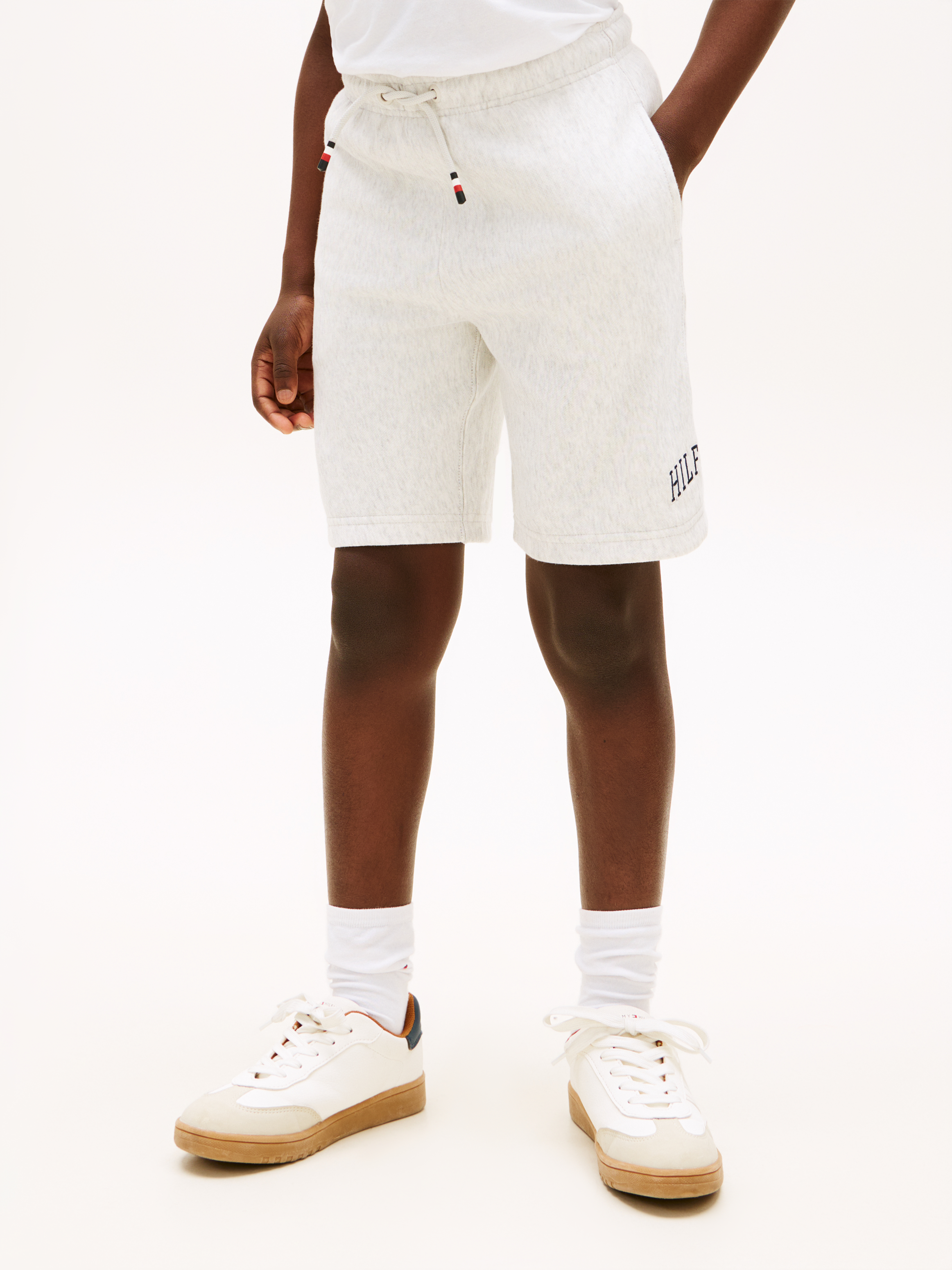 Med en praktisk snøre detalje kan taljen justeres efter behov, hvilket sikrer en perfekt pasform hver gang. Side lommerne gør det nemt at opbevare mindre genstande som nøgler eller en mobiltelefon, mens du er på farten. Det bløde materiale består af en blanding af bomuld og polyester, der giver en behagelig følelse mod huden og sikrer shortsene en lang levetid. Uanset om du styler dem med en afslappet t-shirt eller en sweatshirt, vil disse shorts fra Tommy Hilfiger hurtigt blive en favorit i garderoben.