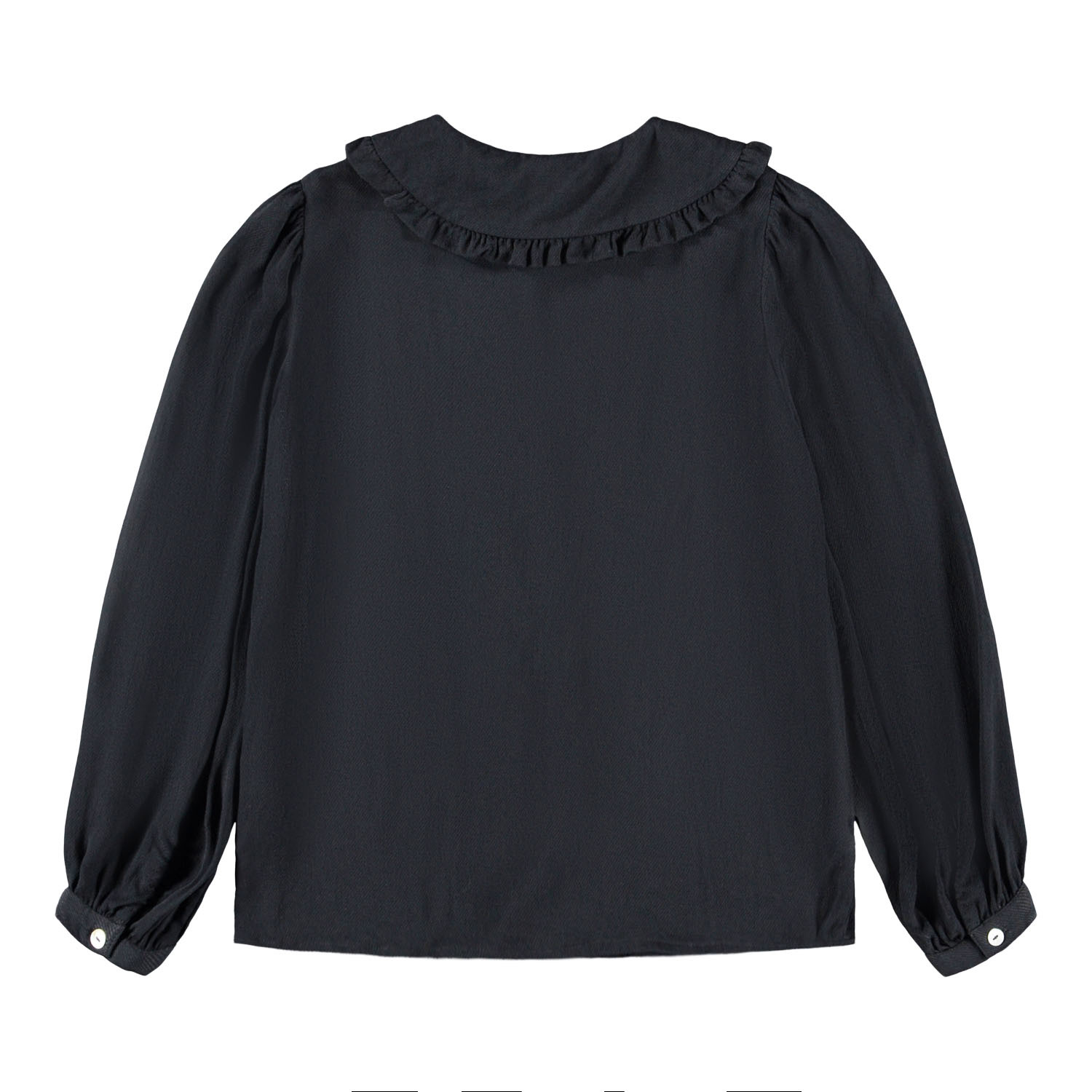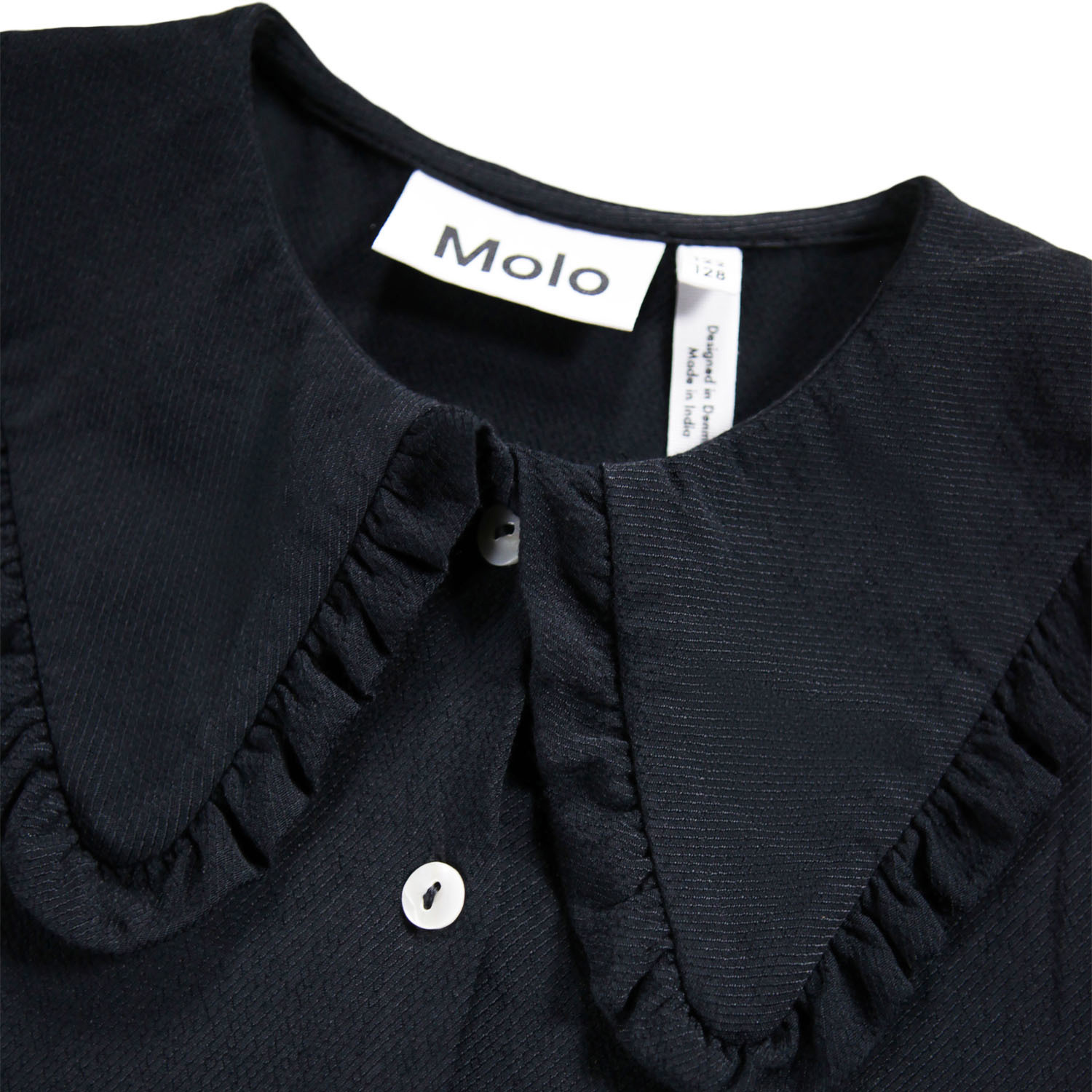 Oplev den charmerende Robbin skjorte fra Molo, der bringer et strejf af elegance til dit barns garderobe. Denne skjorte er designet med en smuk Peter Pan-krave, der prydes af delikate flæsedetaljer, hvilket tilføjer et feminint og sødt touch. Den runde hals giver et klassisk udseende, mens de lange ærmer med manchetter sikrer en behagelig pasform og mulighed for justering efter behov.