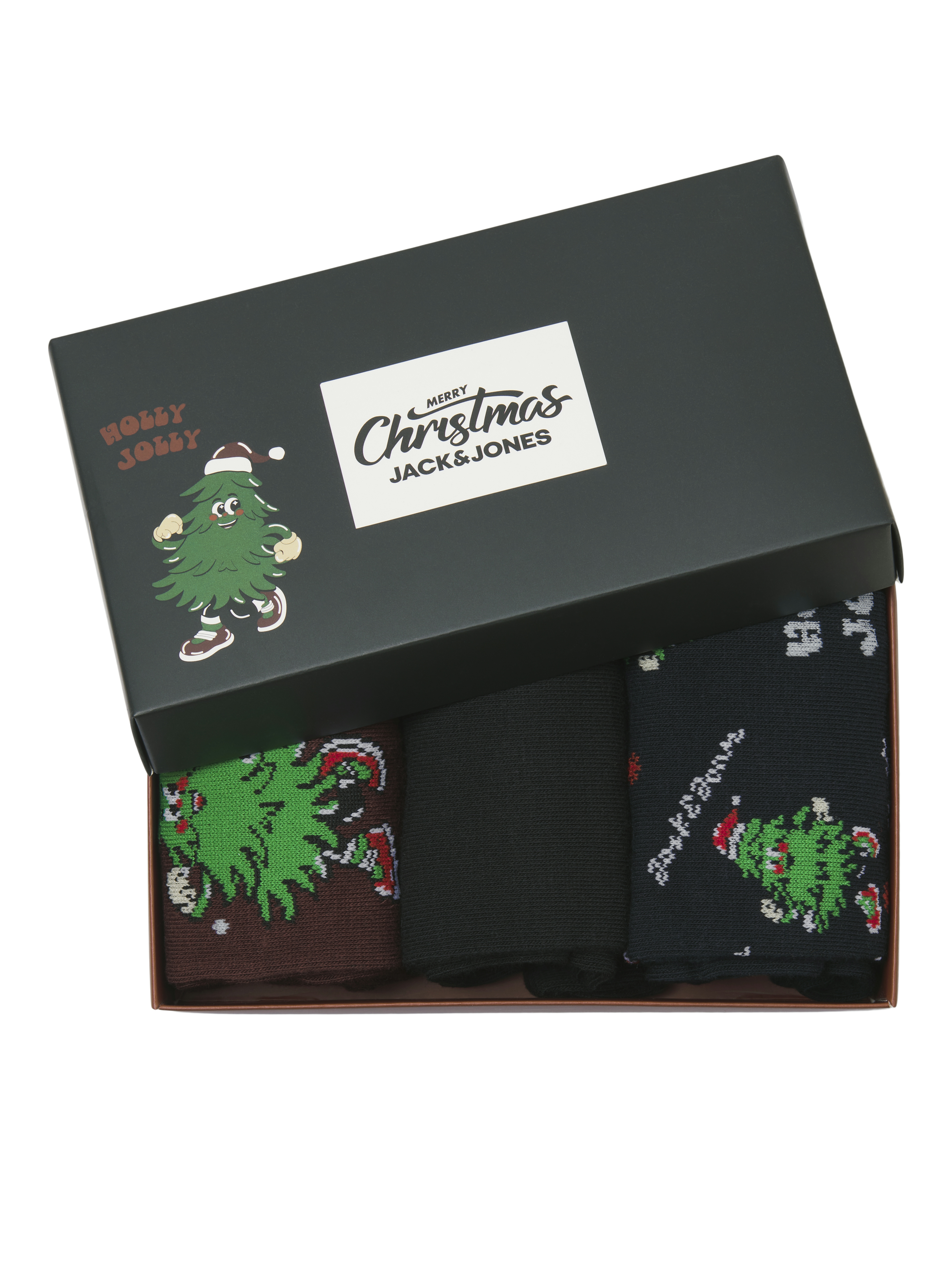 Jolly Giftbox Xmas Tree 3-pak Strømper, Winetasting Dark Navy/Black, 38-43