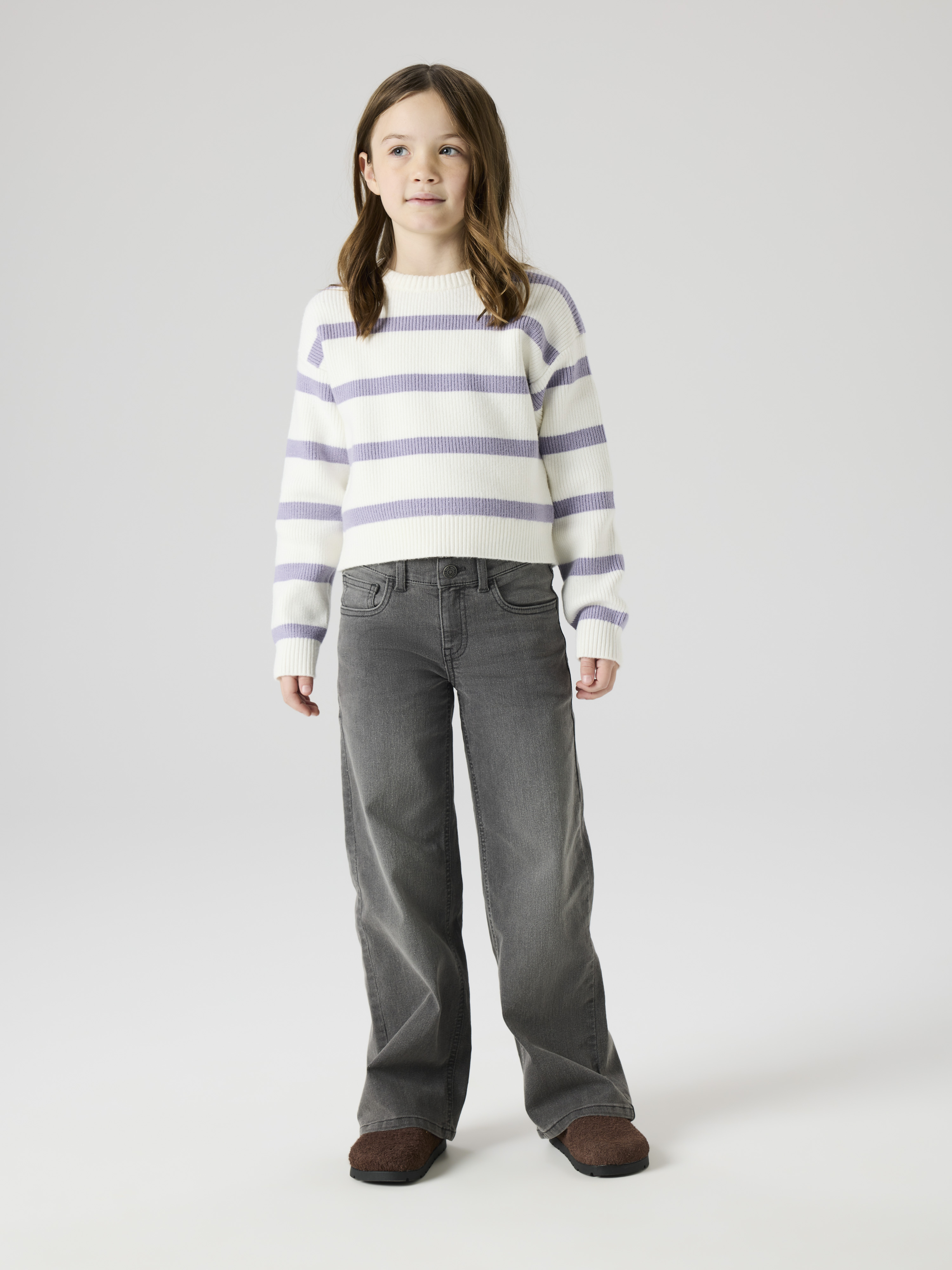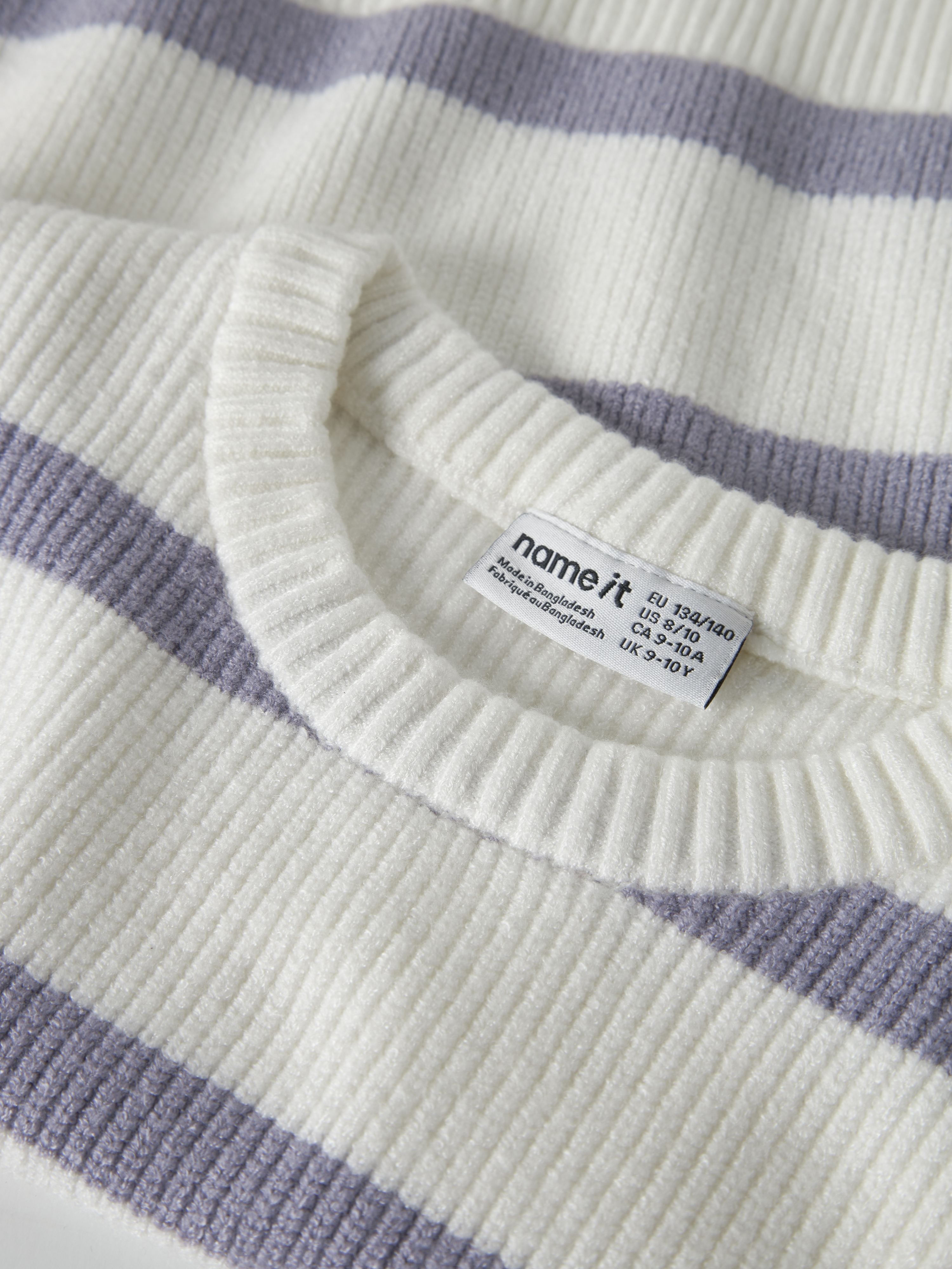 Nilla Striktrøje, Cloud Dancer/Lavender Gray, 146-152 cm