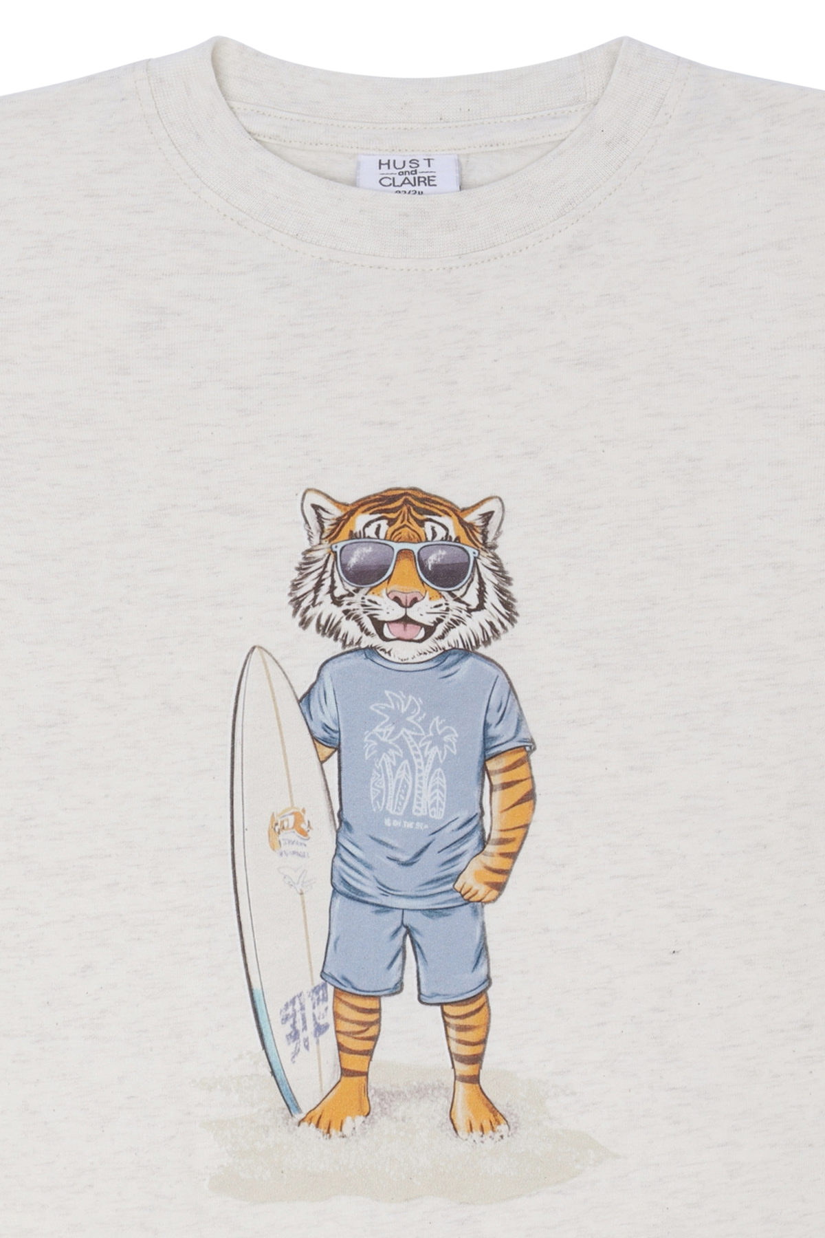 - Motiv af tiger med et surfbræt foran
