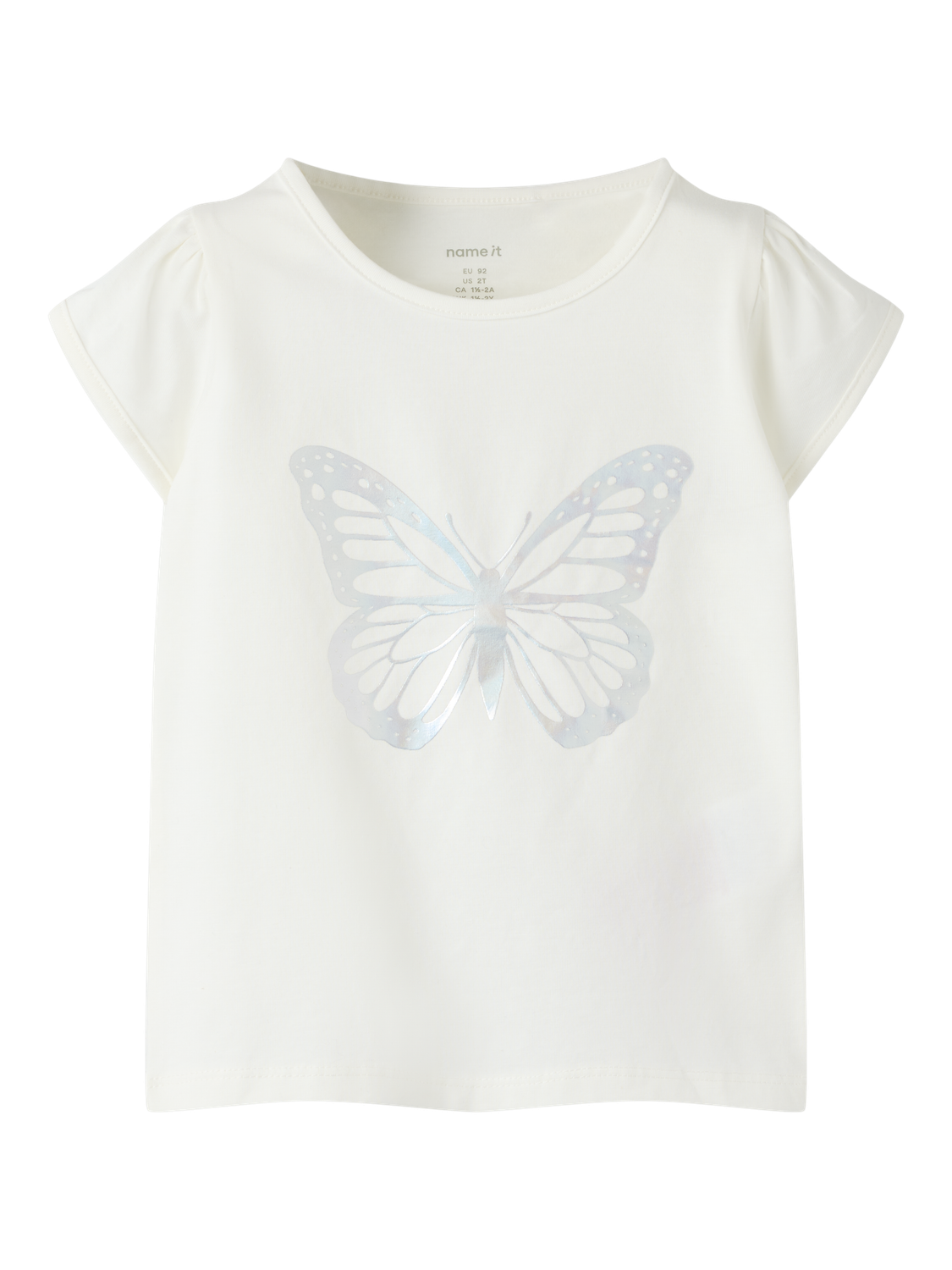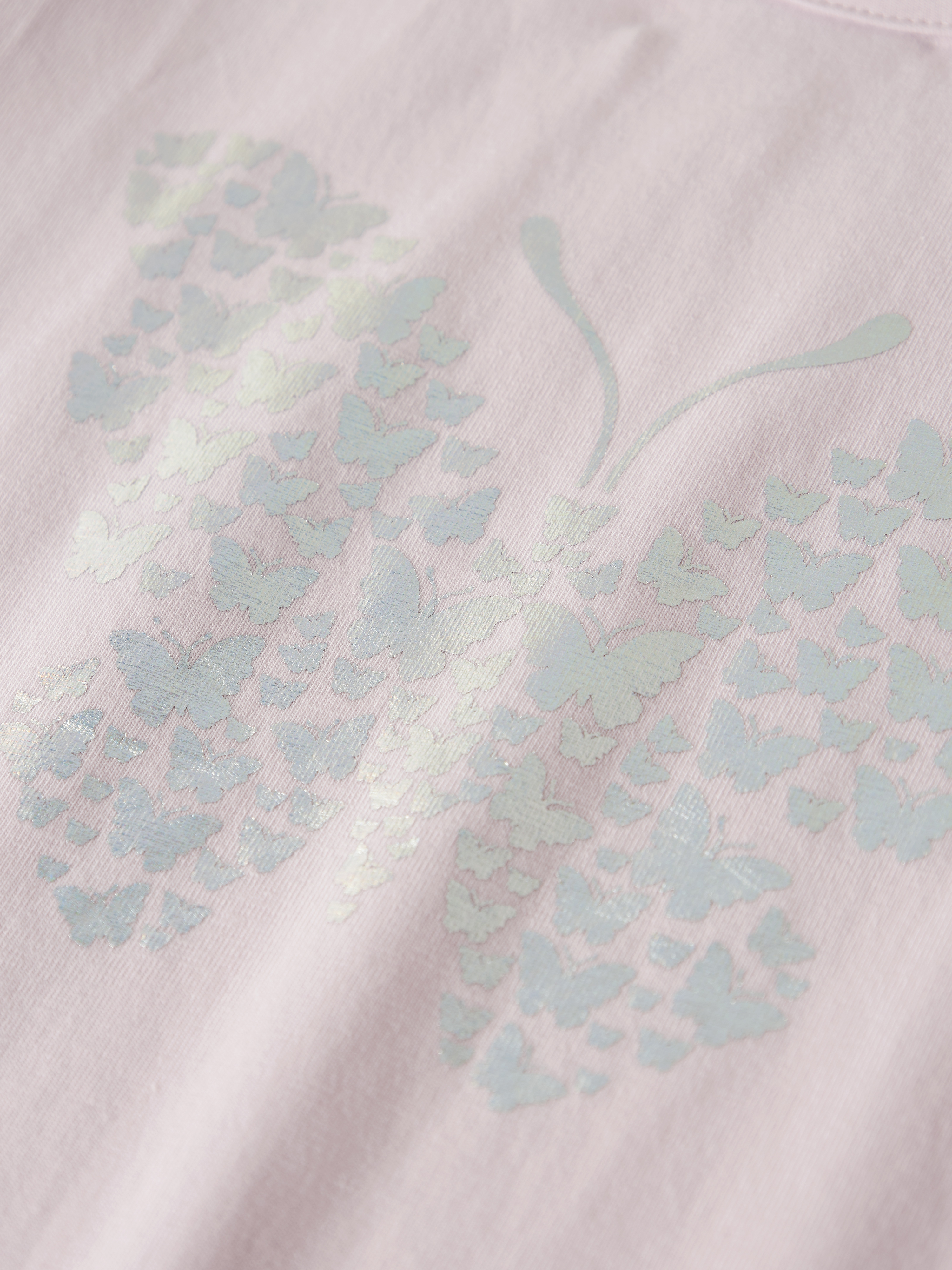 - Skinnende print af sommerfugl foran