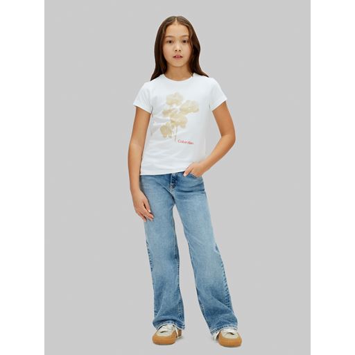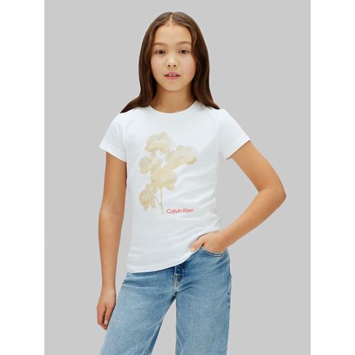 Flower Slim T-shirt, White, 164 cm