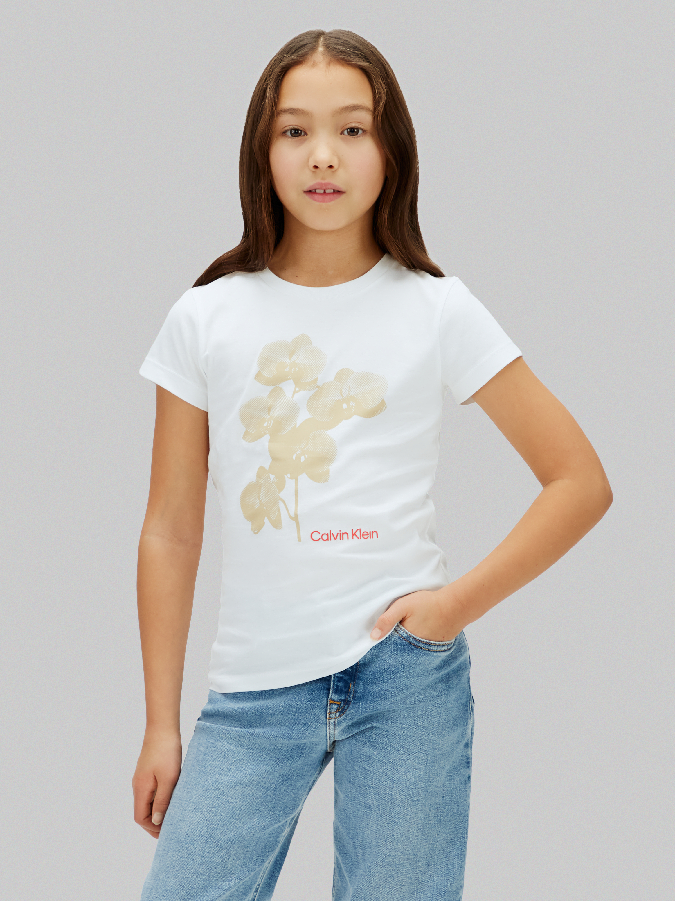 Flower Slim T-shirt, White, 164 cm